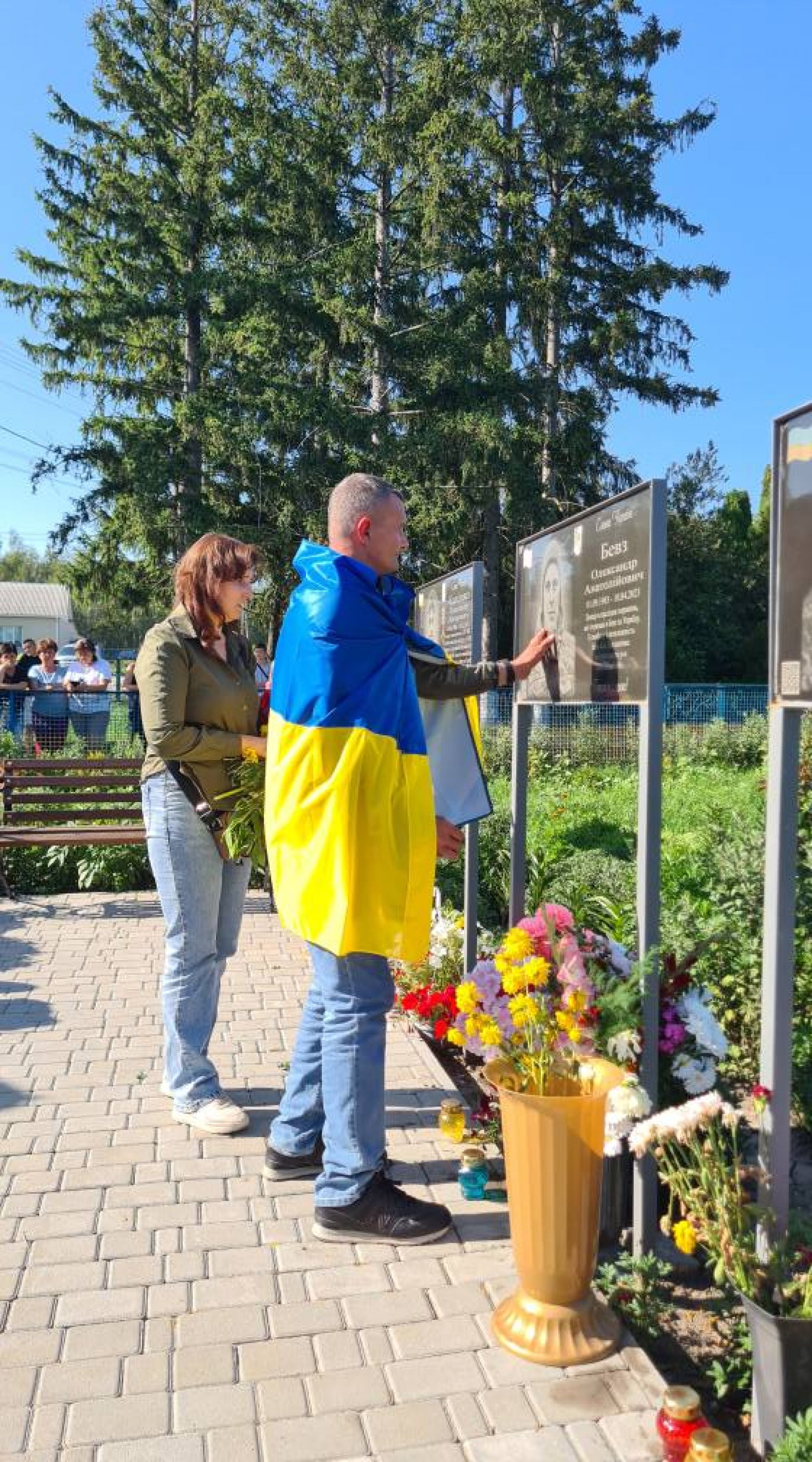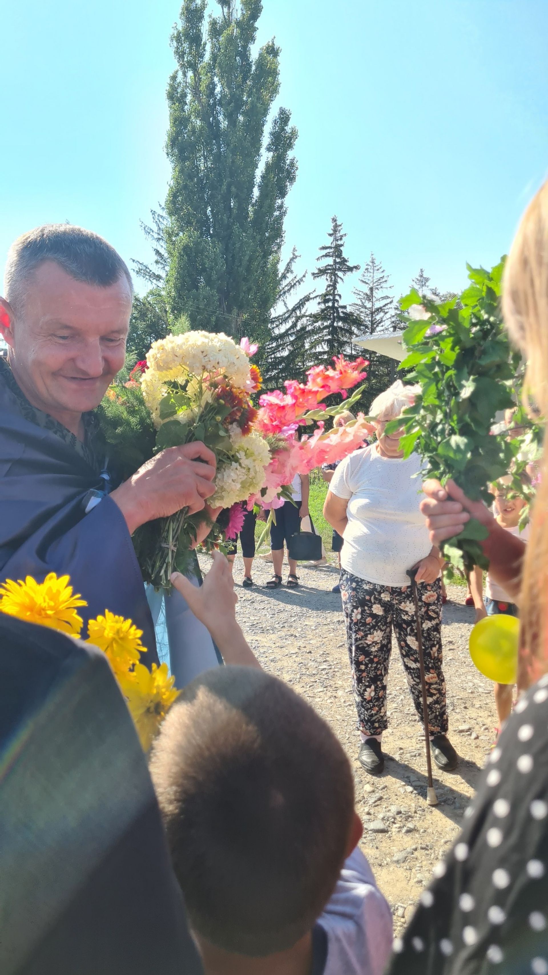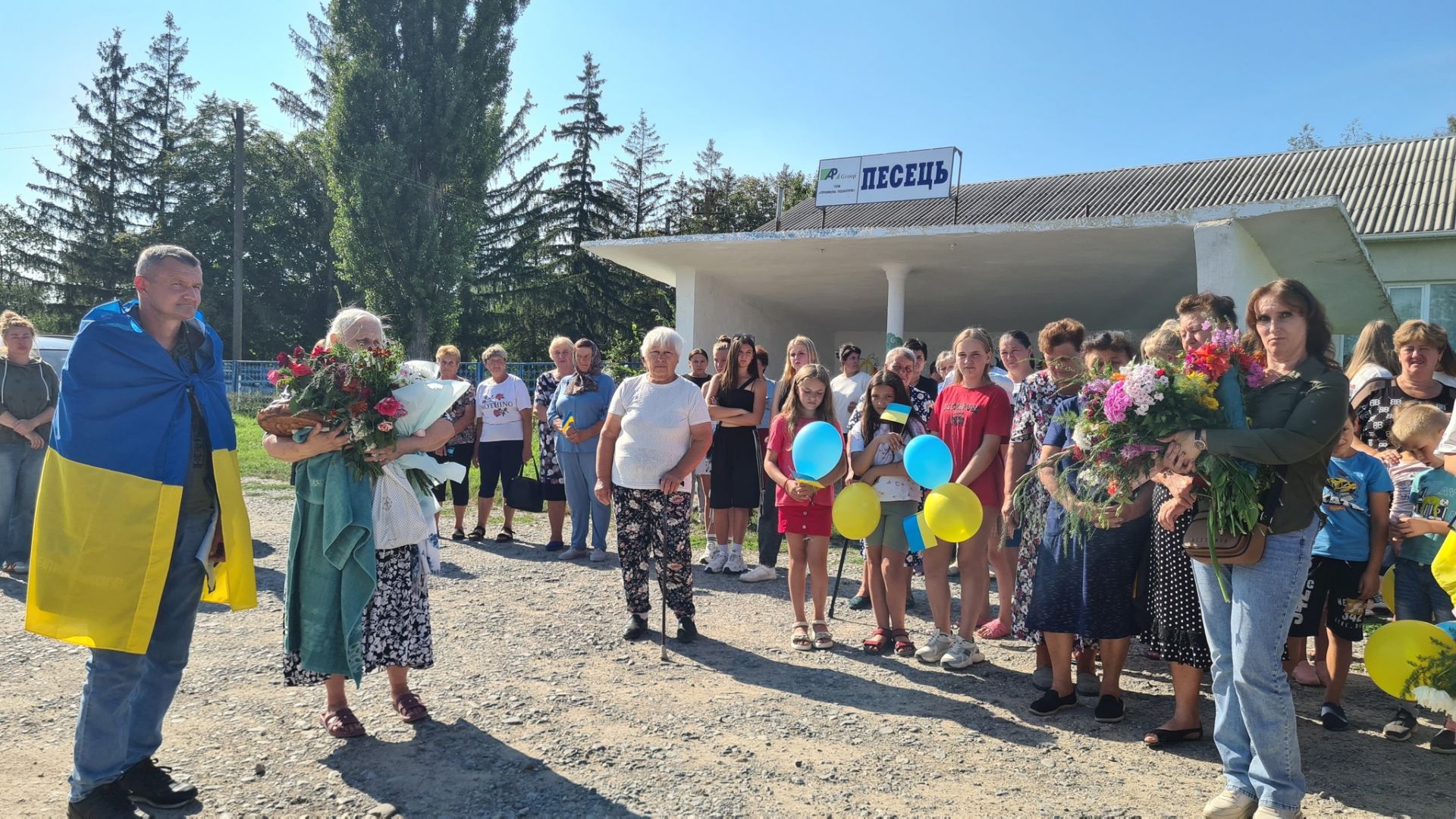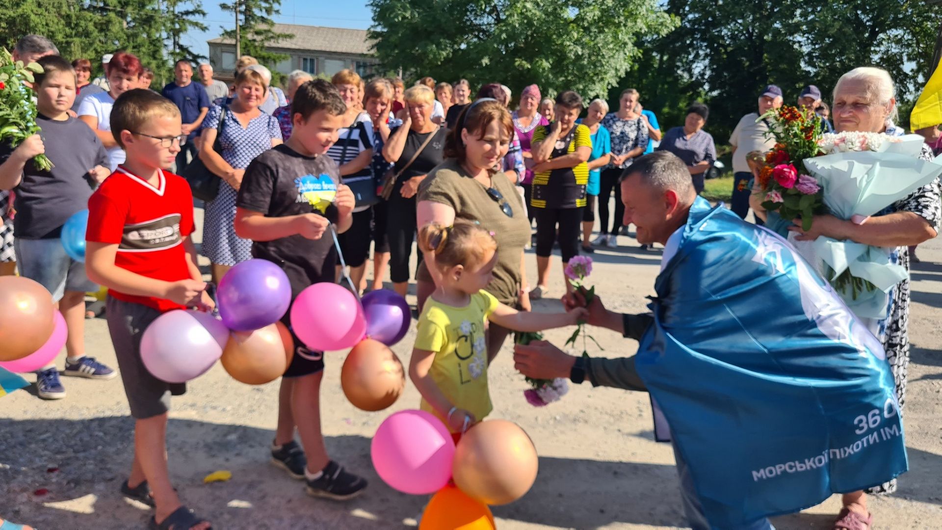 Мама, родина, сусіди, земляки прийшли у центр села, щоб привітати Івана Дмитровича з поверненням додому та обійняти його після довгої нестерпної розлуки. Присутні дякували військовослужбовцю за захист, витримку, мужність та незламність.