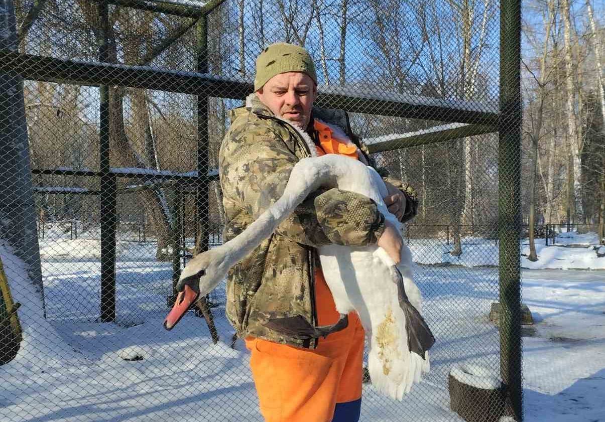 Тож комунальники спільно з небайдужими хмельничанами врятували птаха. Знесиленого лебедя прихистили в зоокуточку парку імені Чекмана.