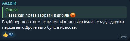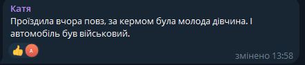 У коментарях в соціальних мережах свідки подій пишуть: автомобіль, який вчасно не загальмував, начебто був військовий.