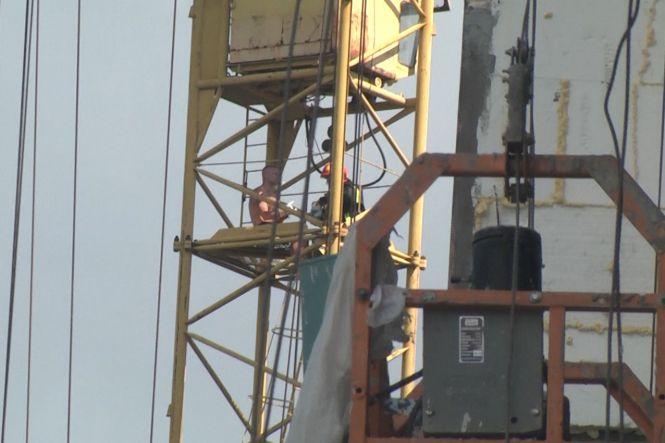 На місце негайно прибули бійці ДСНС. Інформація підтвердилась: на верхівці будівельного крану знаходився чоловік.
