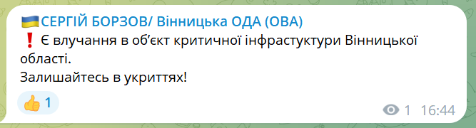 На Вінниччині також влучили в інфраструктурний об'єкт: