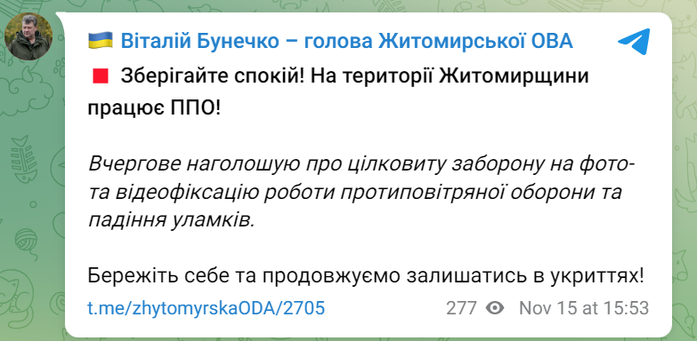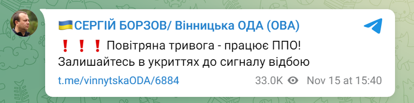 Згодом стало відомо, що над Вінничиною та Житомирщиною спрацювало ППО. Про це проінформували в обласних військових адміністраціях: