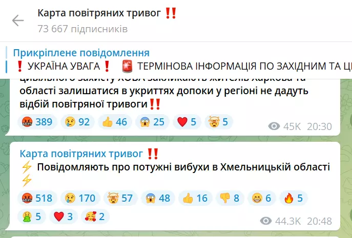 Після відбою, о 21.52, мер Хмельницького Олександр Симчишин повідомив, що в місті ситуація спокійна, а над областю спрацювала ППО.