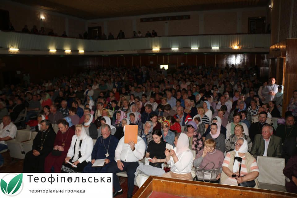 Збори відбулись 21 травня у Теофіпольському центрі культури та дозвілля відбулися. Проти їх проведення та зміни підлеглості храму виступив отець Сергій Філик. Він разом із частиною учасників залишили зал.