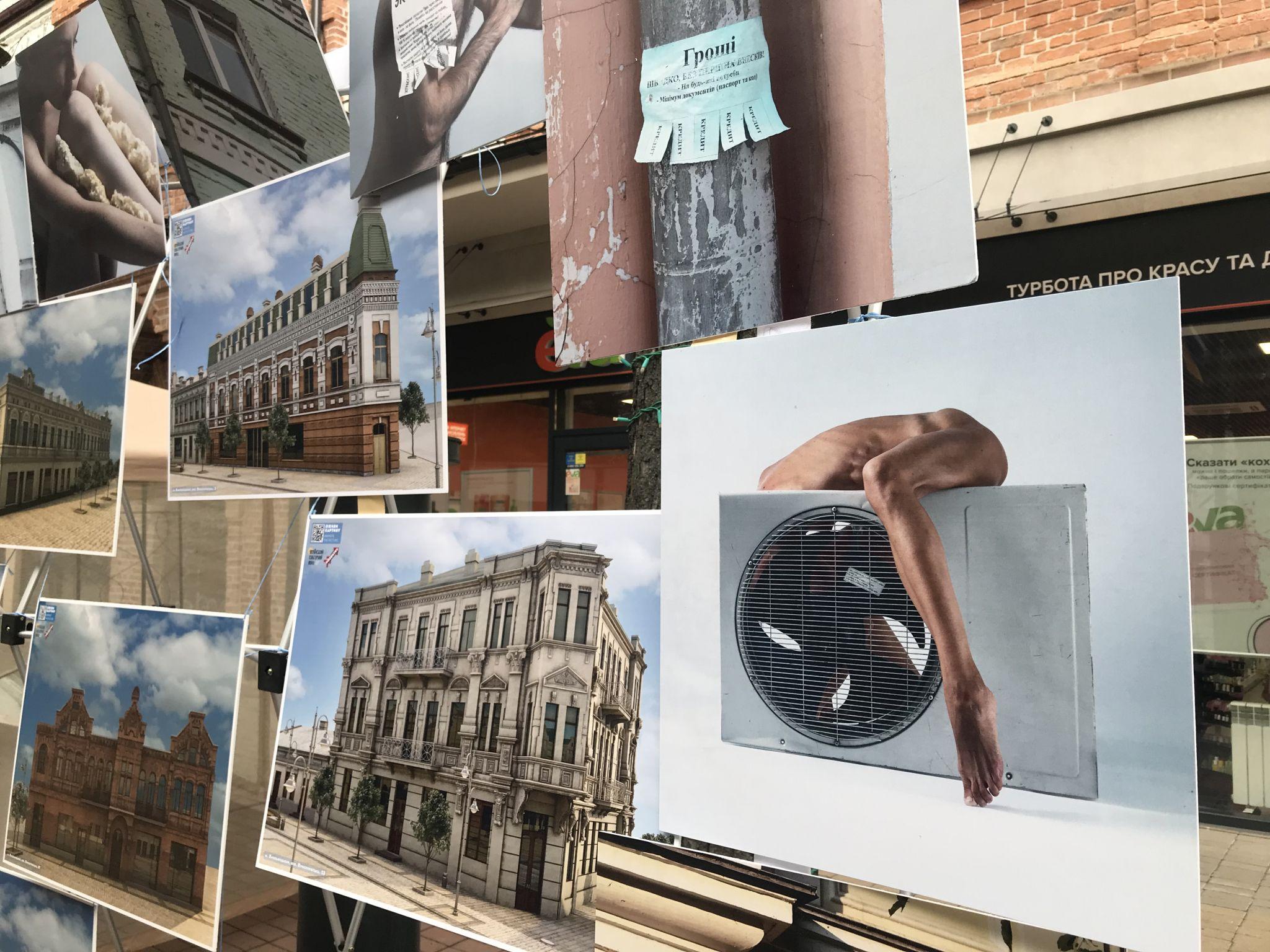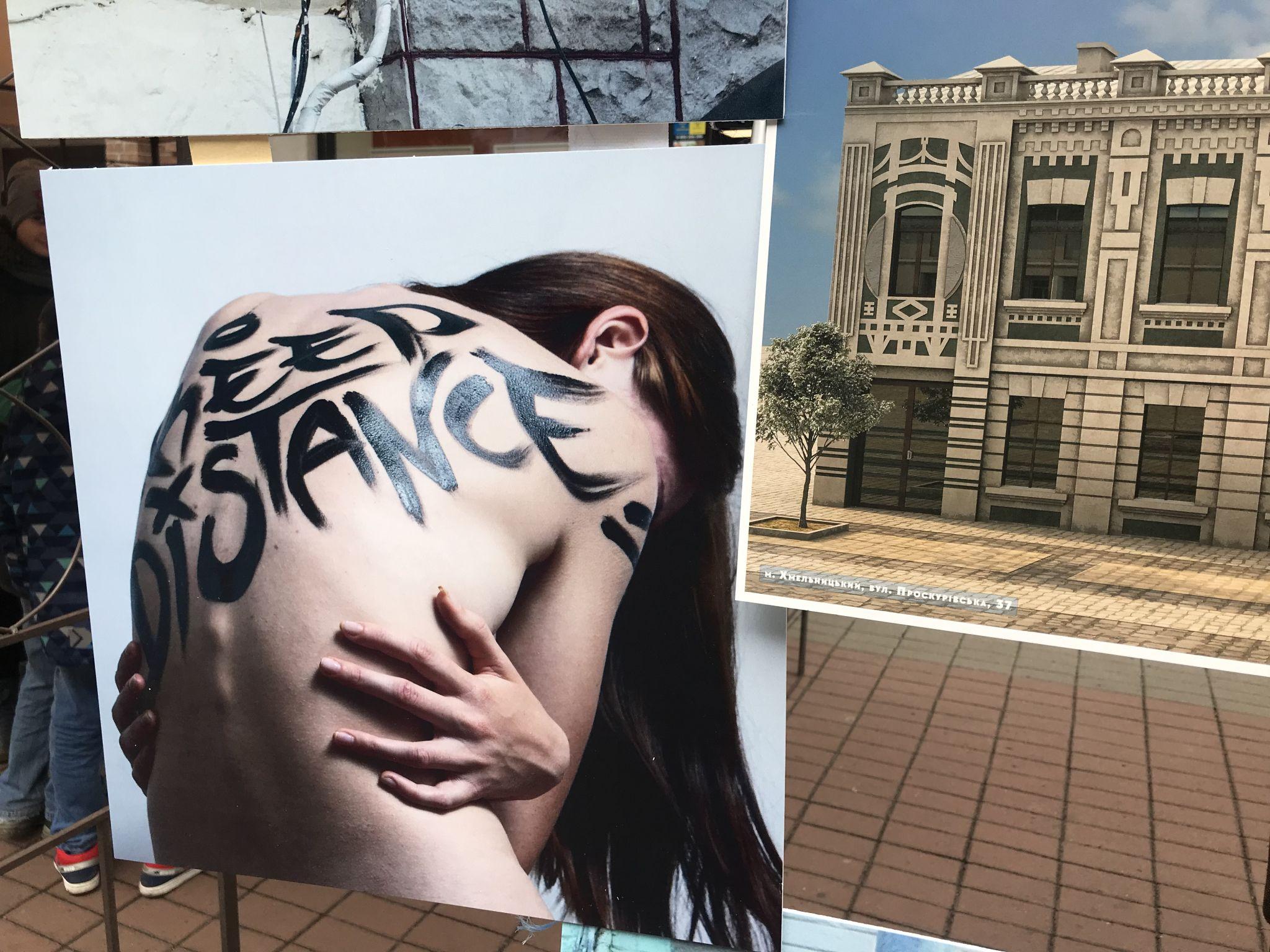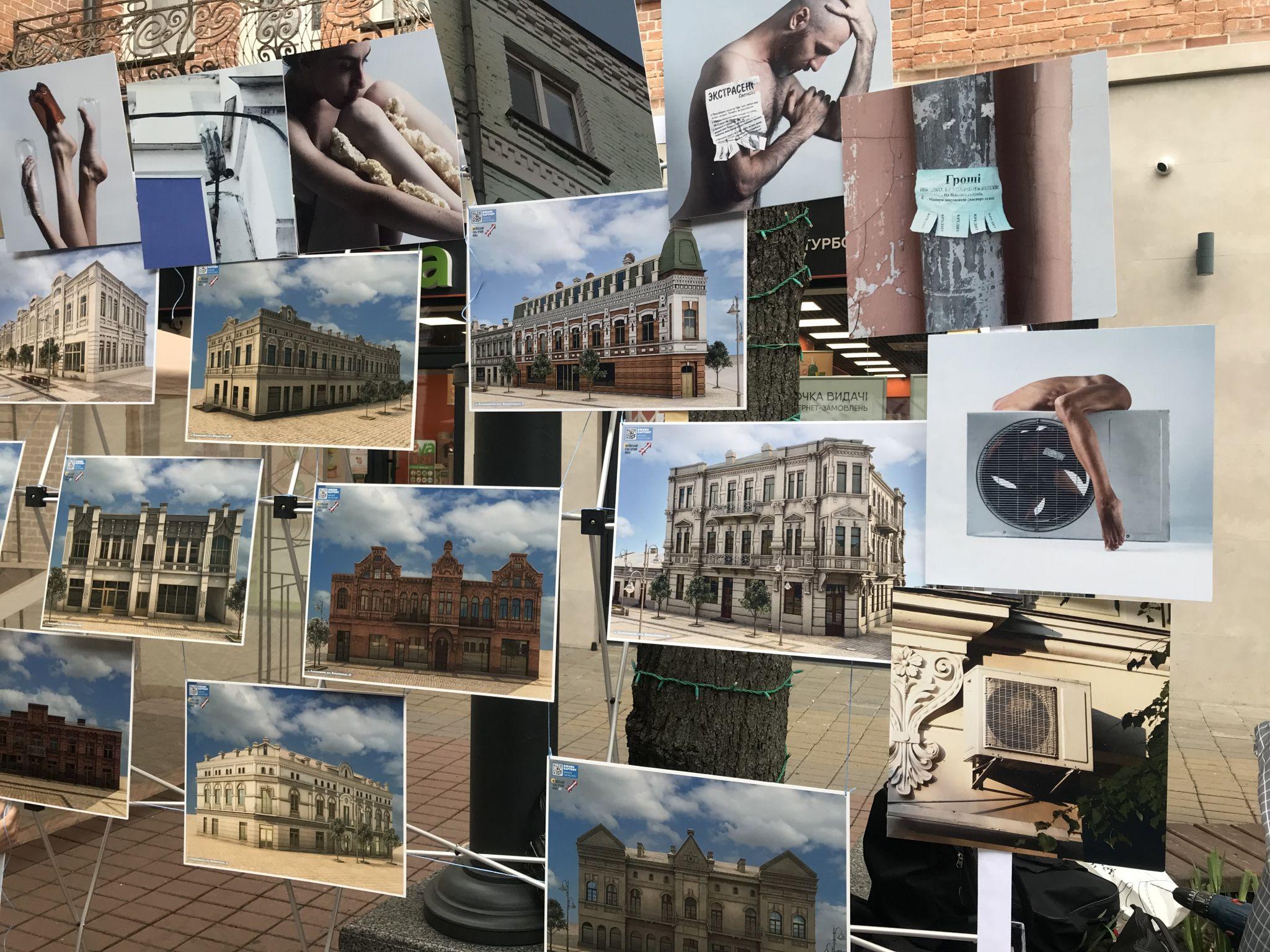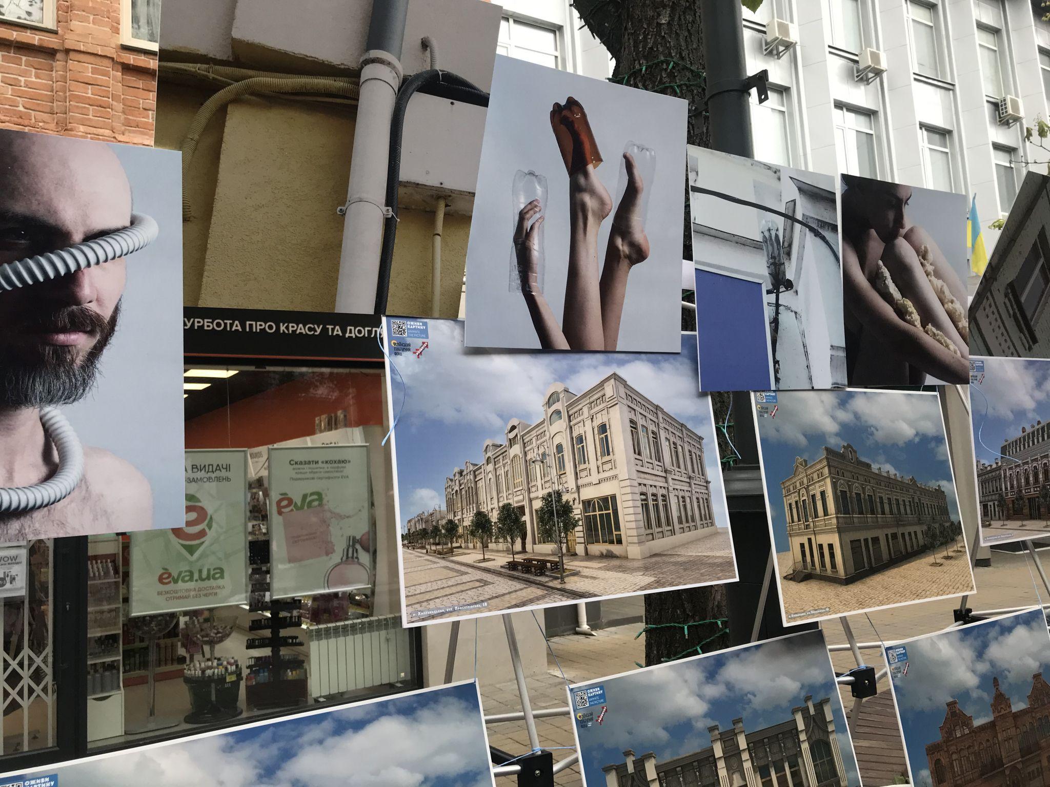 Окрім старих світлин, на Проскурівській можна знайти й інші фотографії. Наприклад, оголених тіл, на які приклеєні оголошення або інша реклама різних товарів. Пояснили - стосуються вони проєкту «Оголені», який вже представляли раніше. Його мета повернути фасадам будівель первісний вигляд. Для цього пропонують прибрати рекламні вивіски, що псують їхній вигляд. «У виставці використали оголені тіла людей, аби містяни зрозуміли - деякі речі є зайвими», - пояснюють організатори.