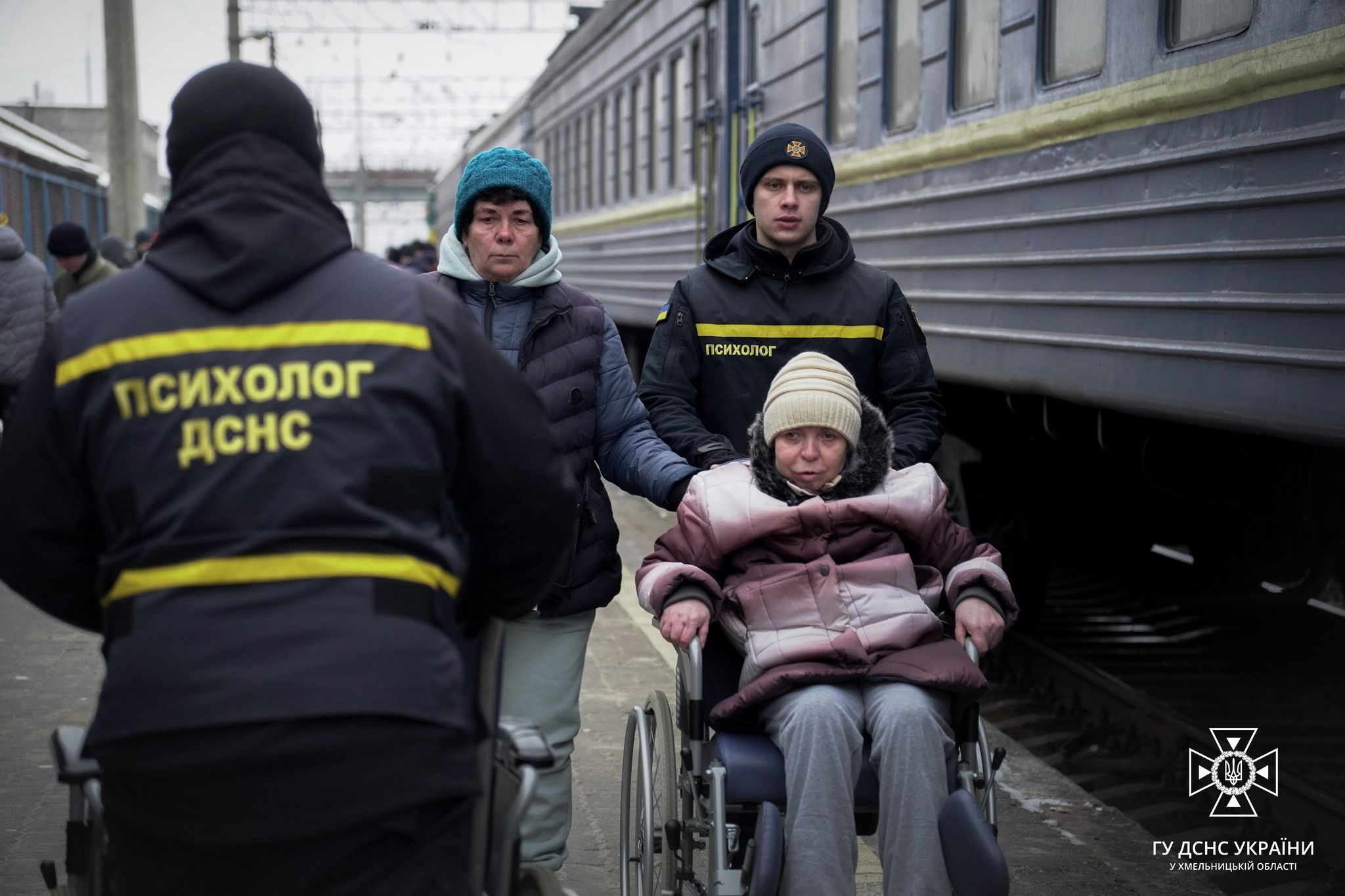 Черговий евакуаційних потяг прибув на залізничний вокзал у Хмельницькому 4 грудня. Вимушених переселенців зустріли надзвичайники та психологи. Про це інформують в управлінні з надзвичайних ситуацій.