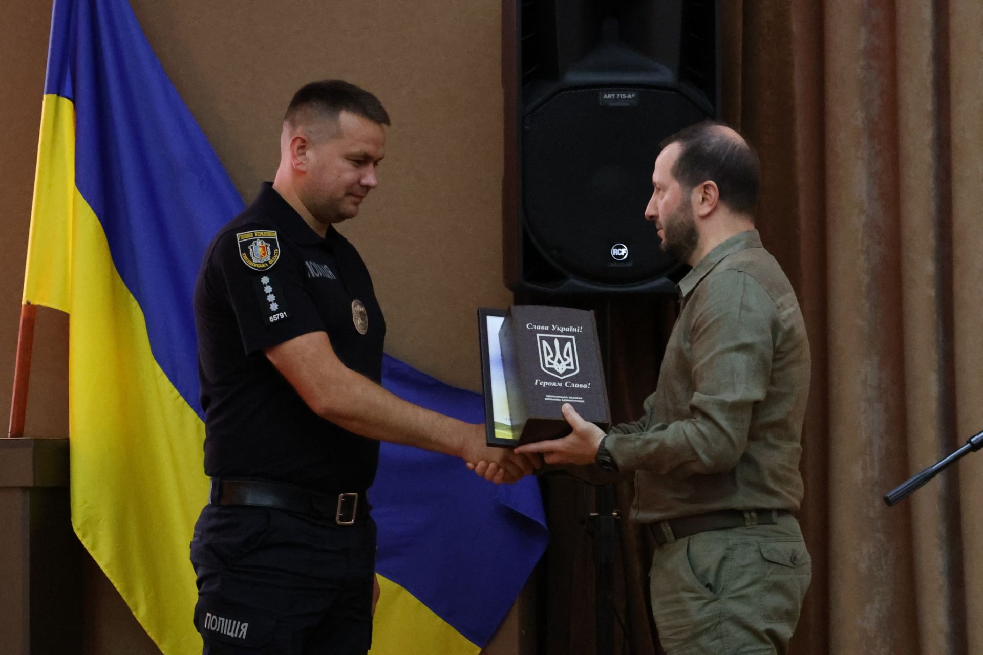 Привітати поліцейських Хмельниччини прибув начальник обласної військової адміністрації Сергій Тюрін. Так, до професійного свята окремі працівники поліції Хмельниччини були нагороджені Почесними грамотами ОВА. Їх відзначили за вагомий внесок у захист прав і свобод людей, підтримання громадського порядку та забезпечення безпеки на території області.