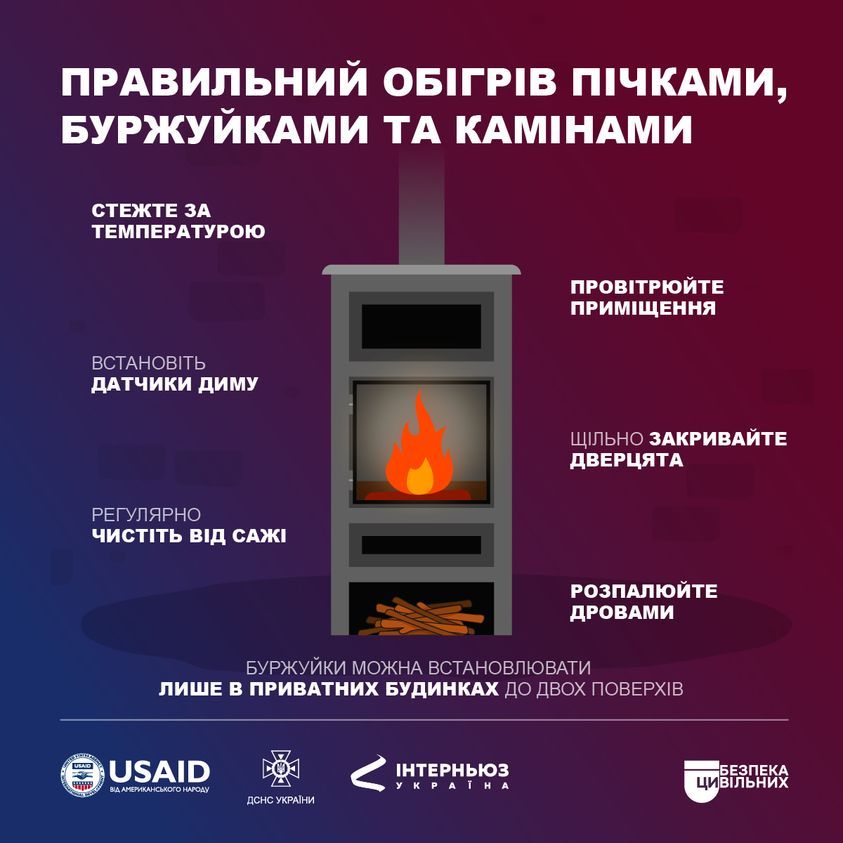 Надзвичайники закликають всіх неухильно дотримуватися правил безпеки під час експлуатації пічного та електричного опалення та генераторів. А також обов’язково роз'яснювати дітям про небезпеку пустощів із вогнем. Розповідаємо як і чим правильно користуватися.