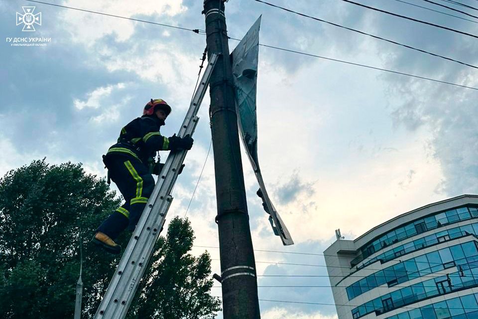 А вже після 20 години рятувальники залучалися до ліквідації перших наслідків вечірньої негоди. Так, у Хмельницькому на проїжджу частину вітер повалив сухе дерево. Його розкряжували на частини та забрали з проїжджої частини. На вулиці Степана Бандери рекламний щит впав з електроопори також через сильний вітер.
