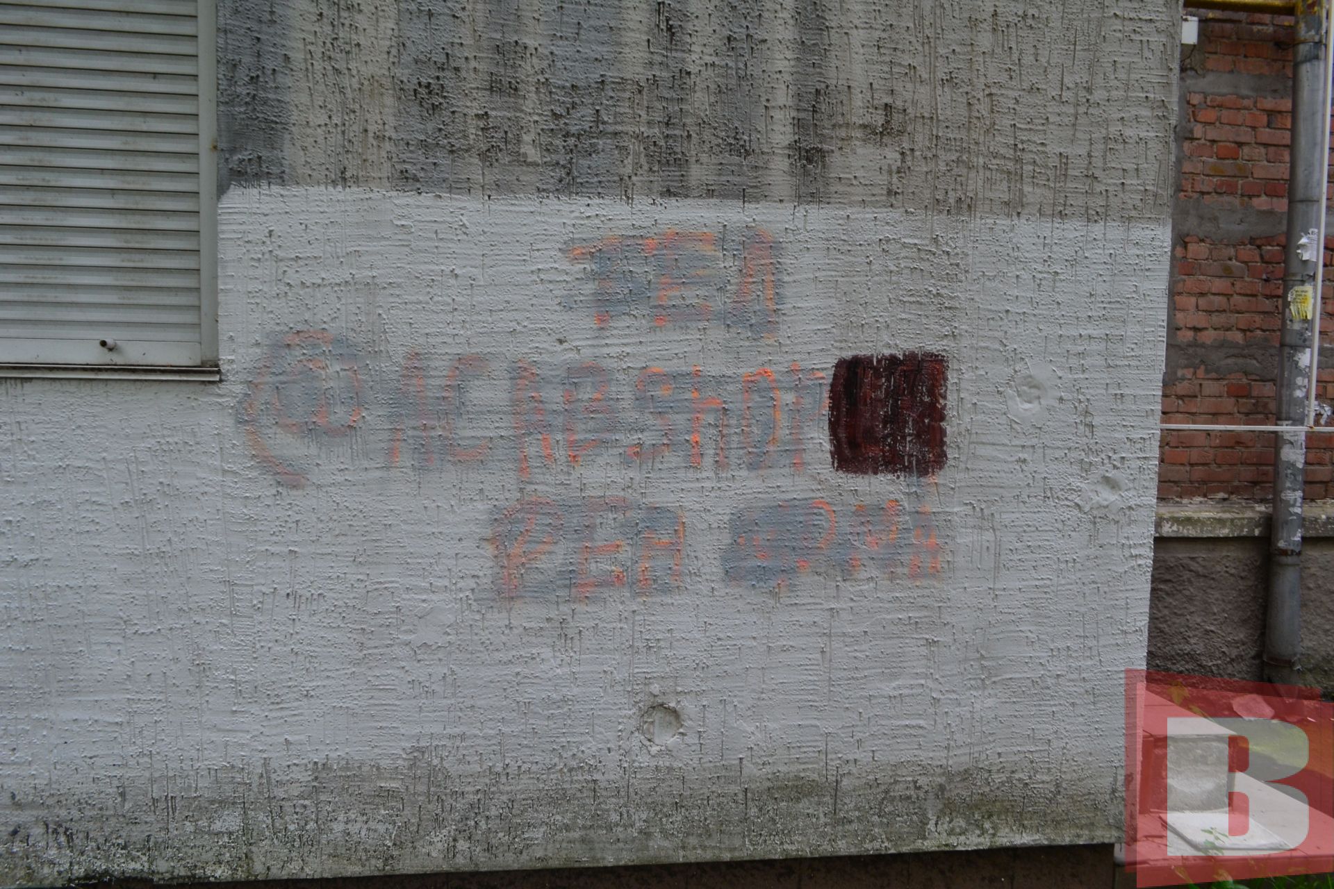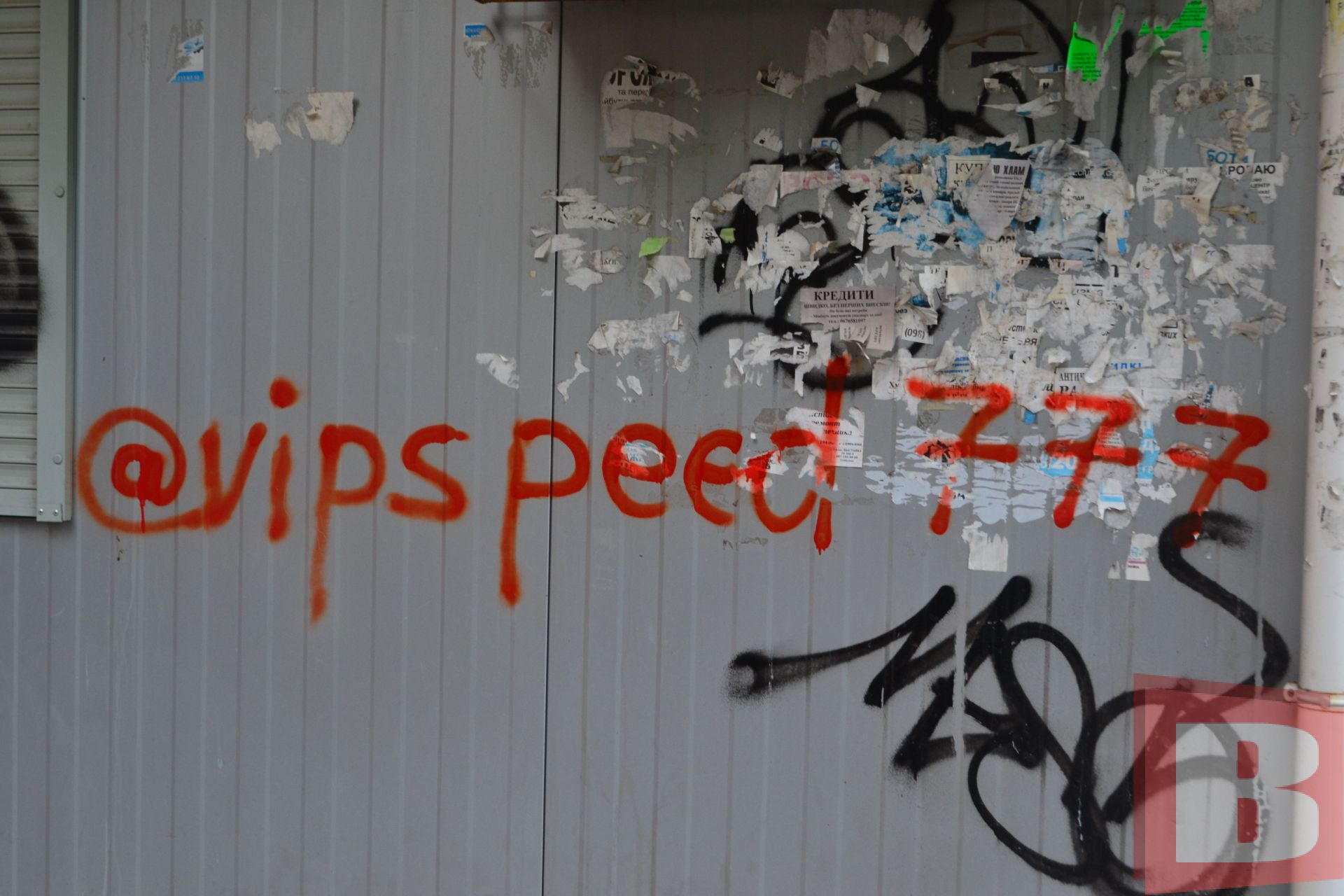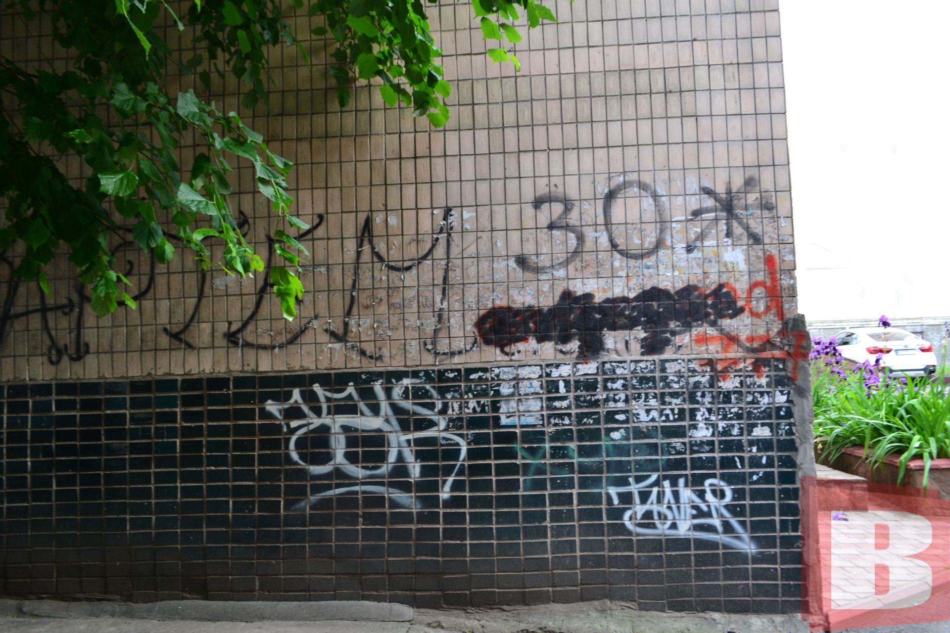 Щодня на стінах будинку тут з’являються нові написи із рекламою наркотиків та сайтів для самогубців. Комунальники зафарбовують їх, а на ранок на тому ж місці вже красується черговий напис, і так до безкінечності.