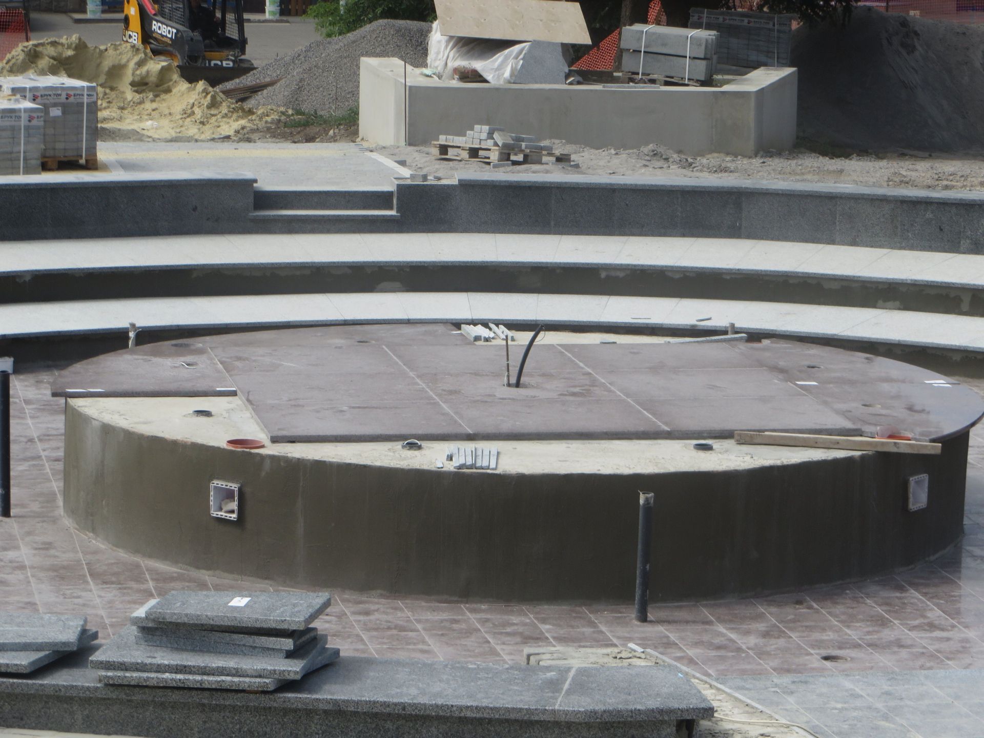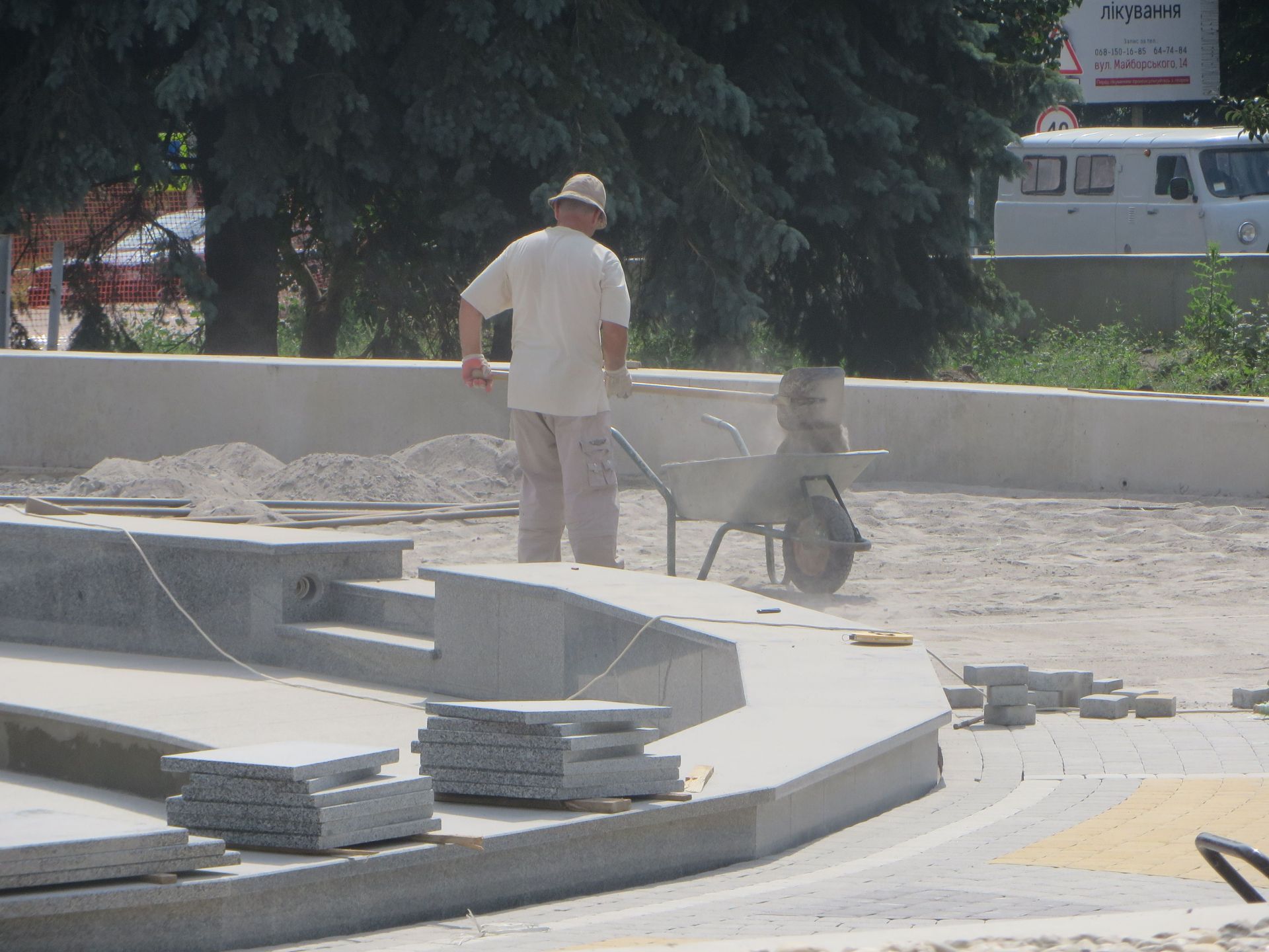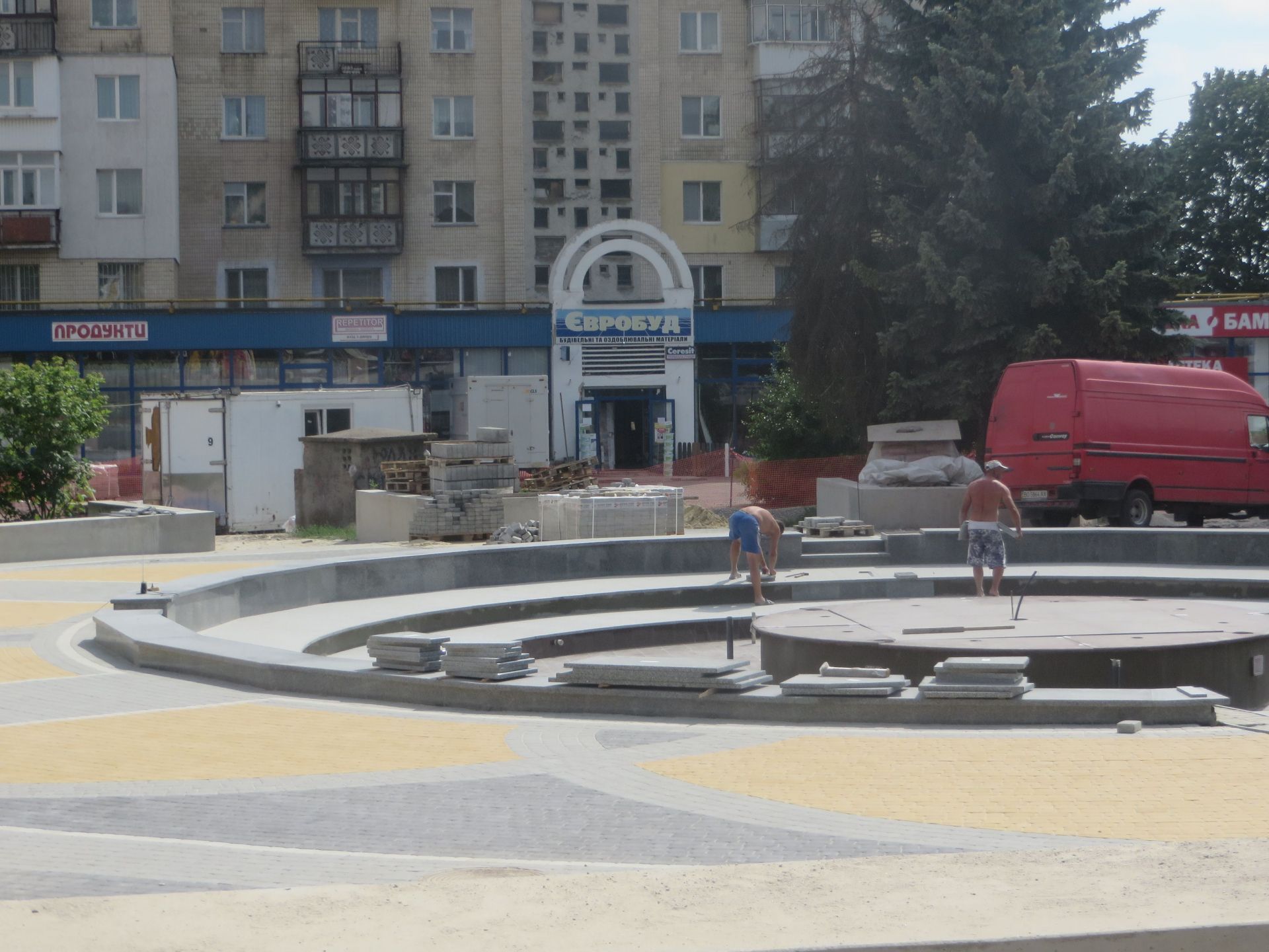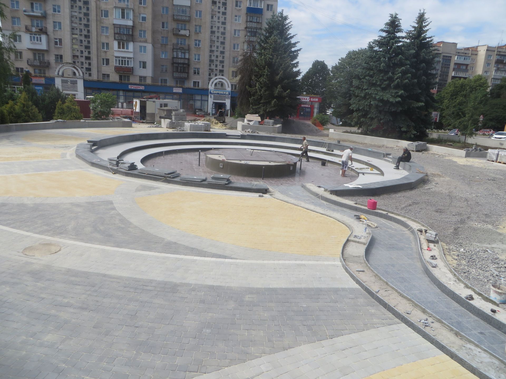 Зараз будівельники вже встигли викласти бруківку на одній стороні від фонтану. До того ж, зараз займаються облаштуванням бордюрів, на яких поставлять нові лавочки. Доробляють і сам фонтан всередині. Відкриття нового водограю планують на кінець липня.