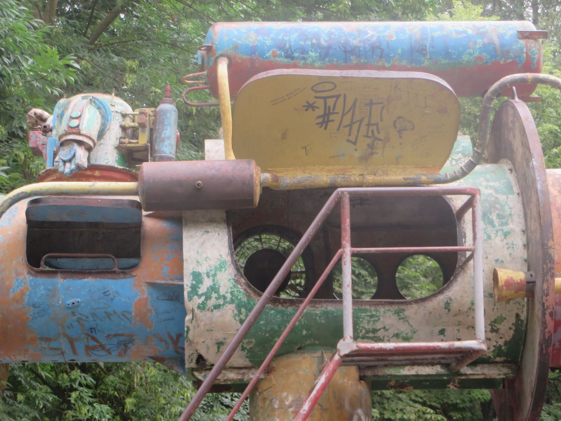Підрядники вже встигли здерти якомога більше фарби з полущеної металевої скульптури. Кажуть, що це одне з найважчих завдань. Далі візьмуться за шпаклювання і латання дірок, а тоді і пофарбують. Оновити витвори Миколи Мазура хочуть до кінця червня.