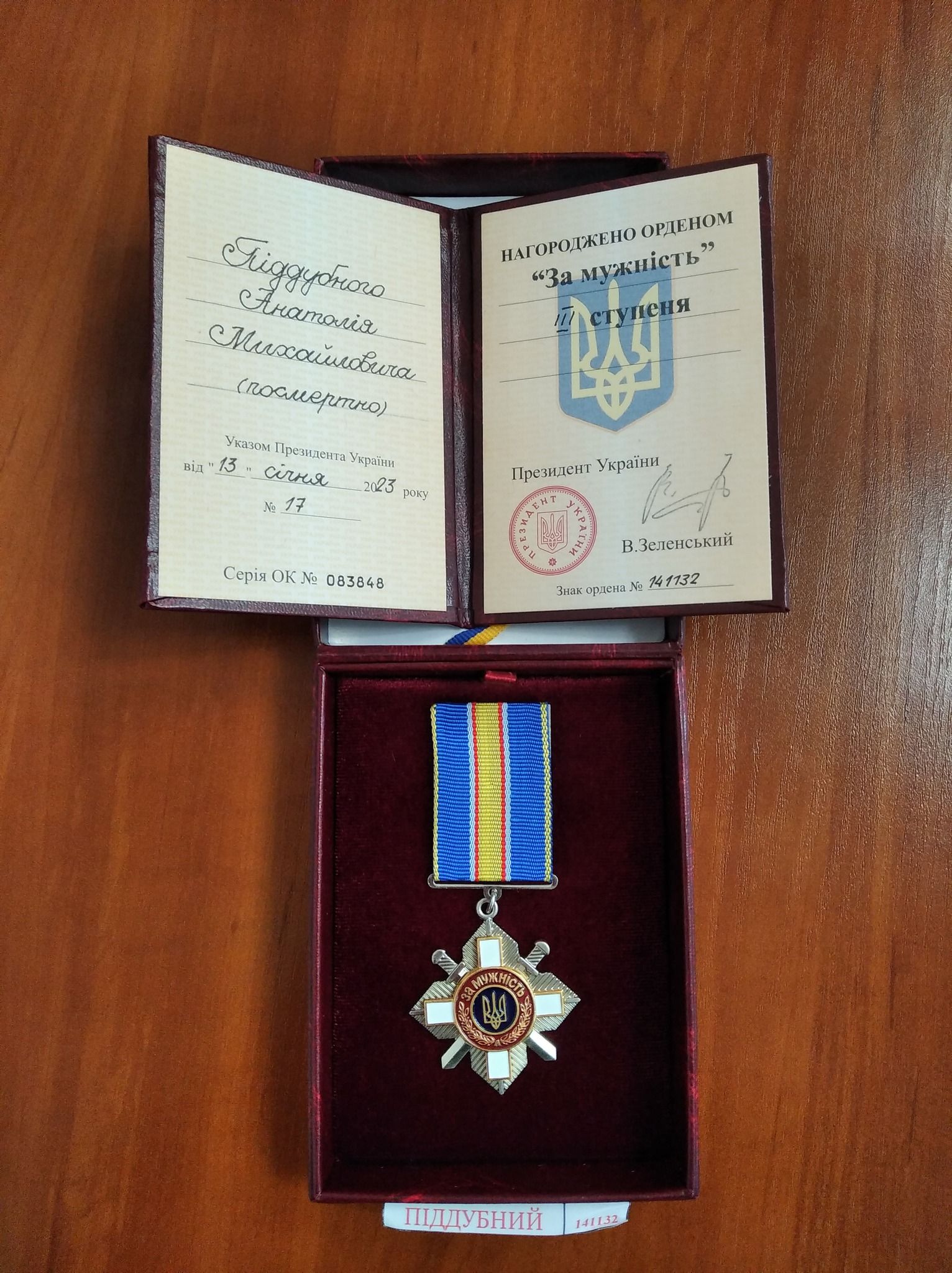 — Сьогодні разом з начальником Шепетівського районного територіального центру комплектування та соціальної підтримки Сергієм Царуком, комадиром в/ч А1358 Миколою Гресєвим, вручили нагороду родині загиблого Героя Анатолія Піддубного, — йдеться в повідомленні.