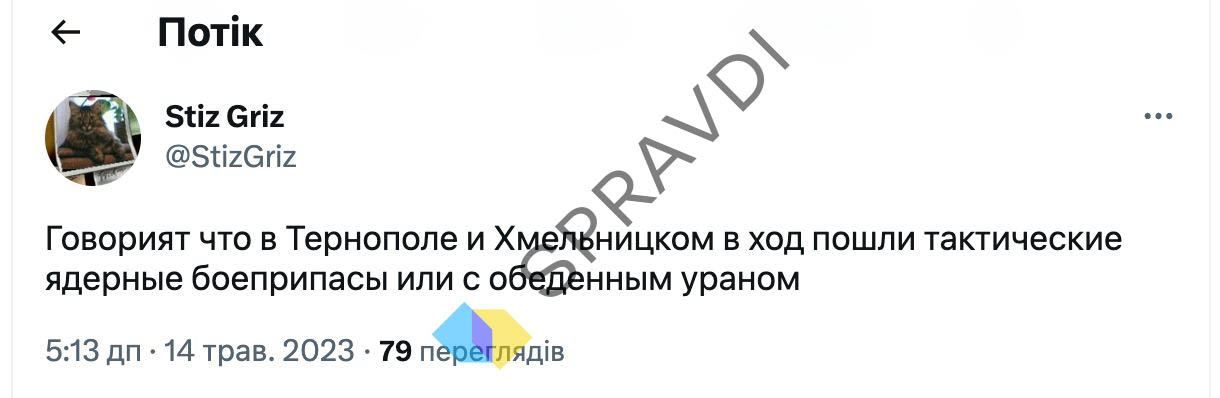 Вони зазначають, що розгін почався через дрібні Telegram-канали та пропагандистський Twitter-акаунт. Там йдеться, що «у Тернополі та Хмельницькому пішли у хід тактичні ядерні боєприпаси або зі збідненим ураном».