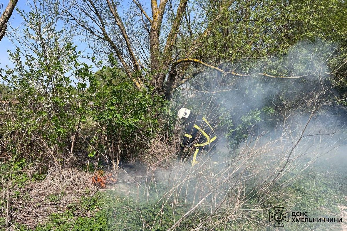 Двічі гасили пожежу сухої рослинності. Горіло поза межами села Бальківці Хмельницького району та на дачному масиві «Електроніка» у Хмельницькому.