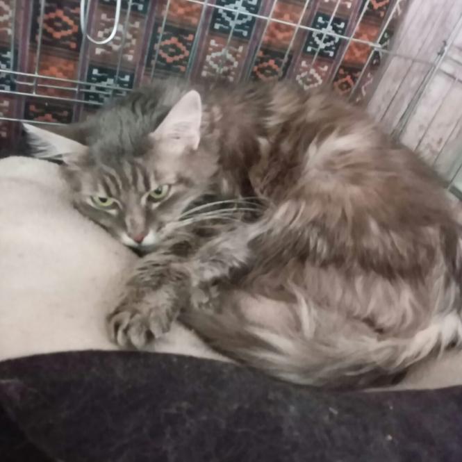 - Кішка була в дикому стресі, вона не підпускала до себе людей, кидалася на клітку, в яку її посадили. Зараз більш-менш заспокоїлася, дає себе погладити, можна спокійно насипати їй корму та поміняти воду. Але досі не довіряє людям, бо все життя прожила з бабусею у тиші, спокої, теплі та ласці, - розповідає Ірина.