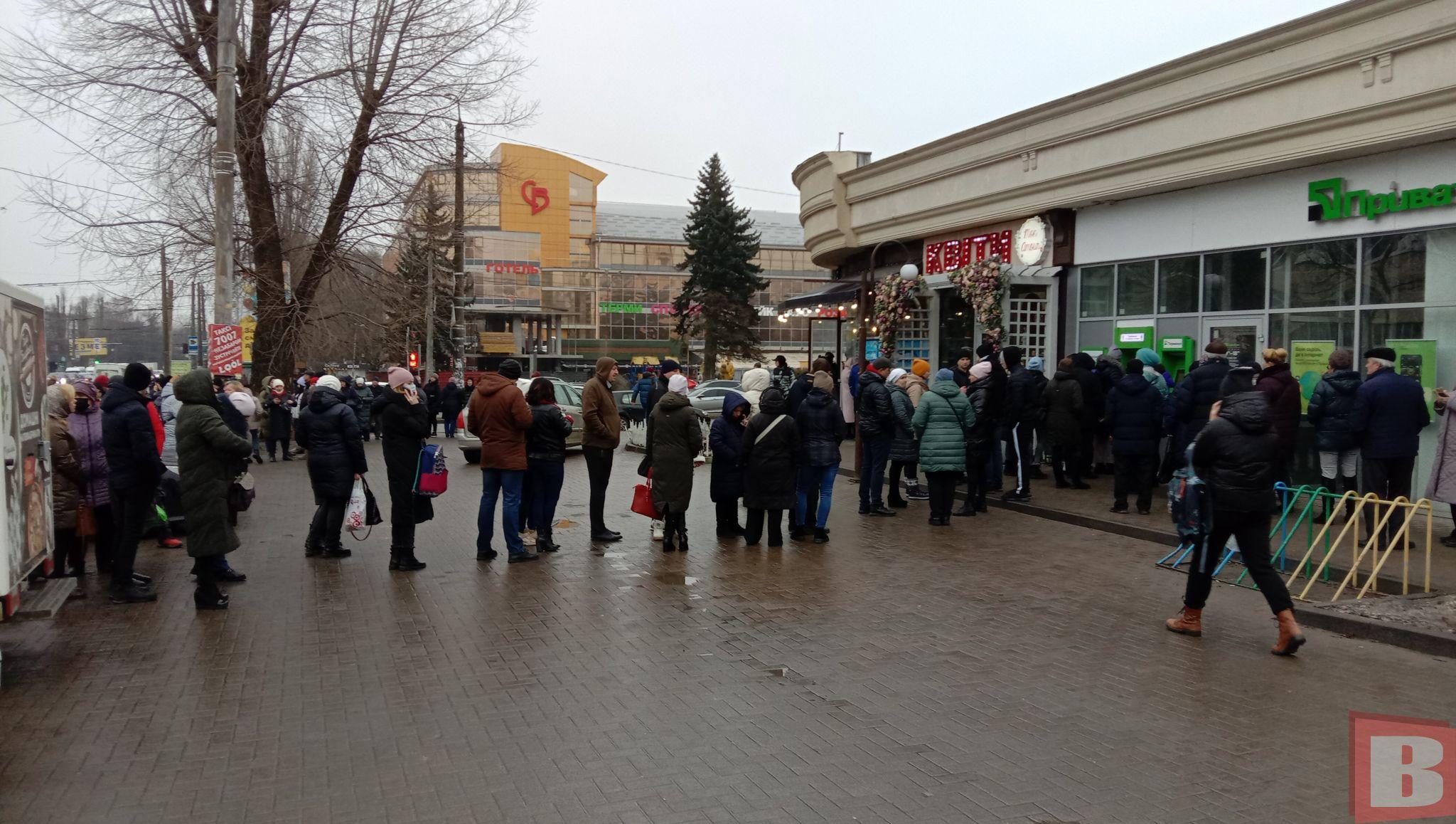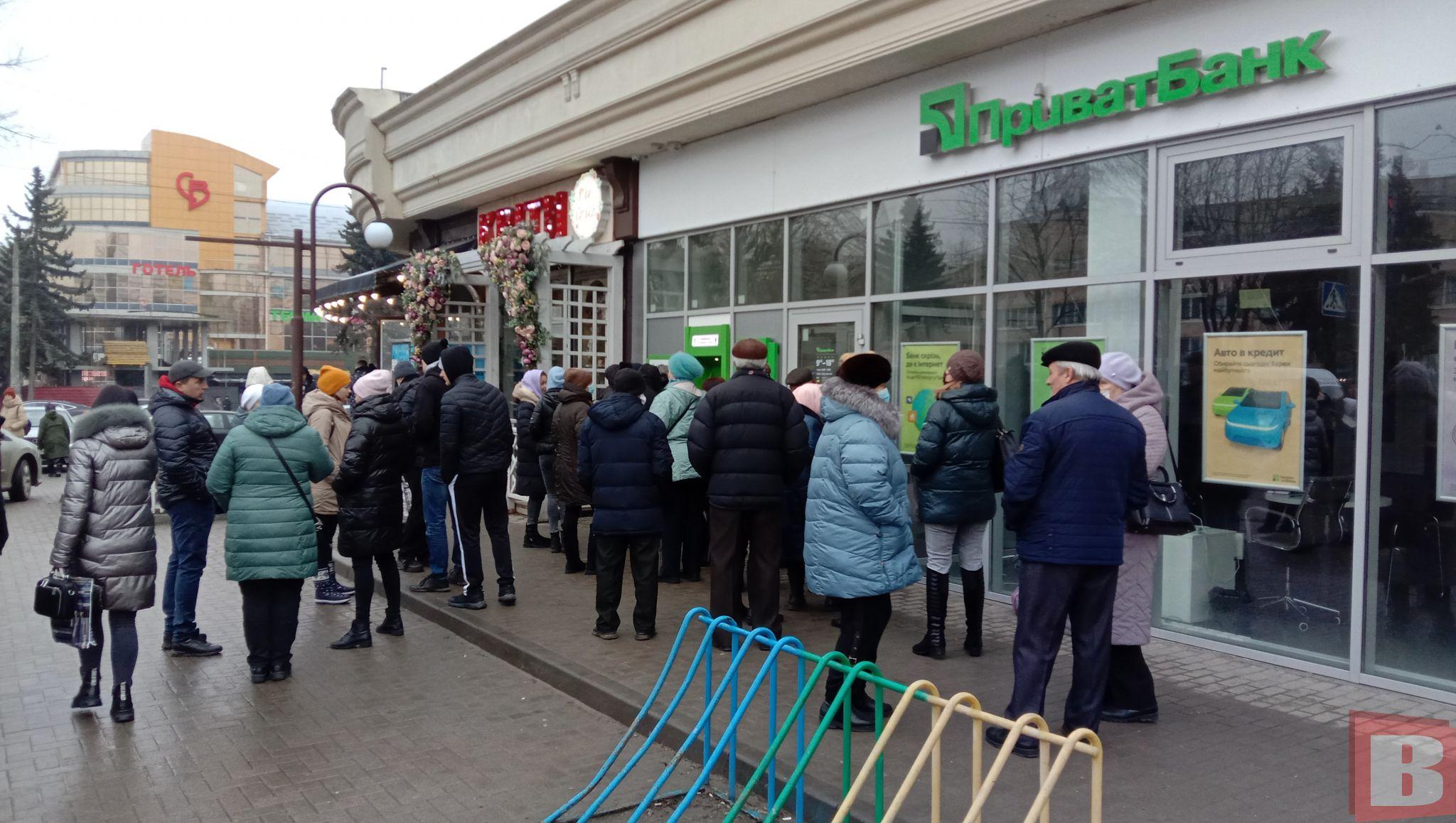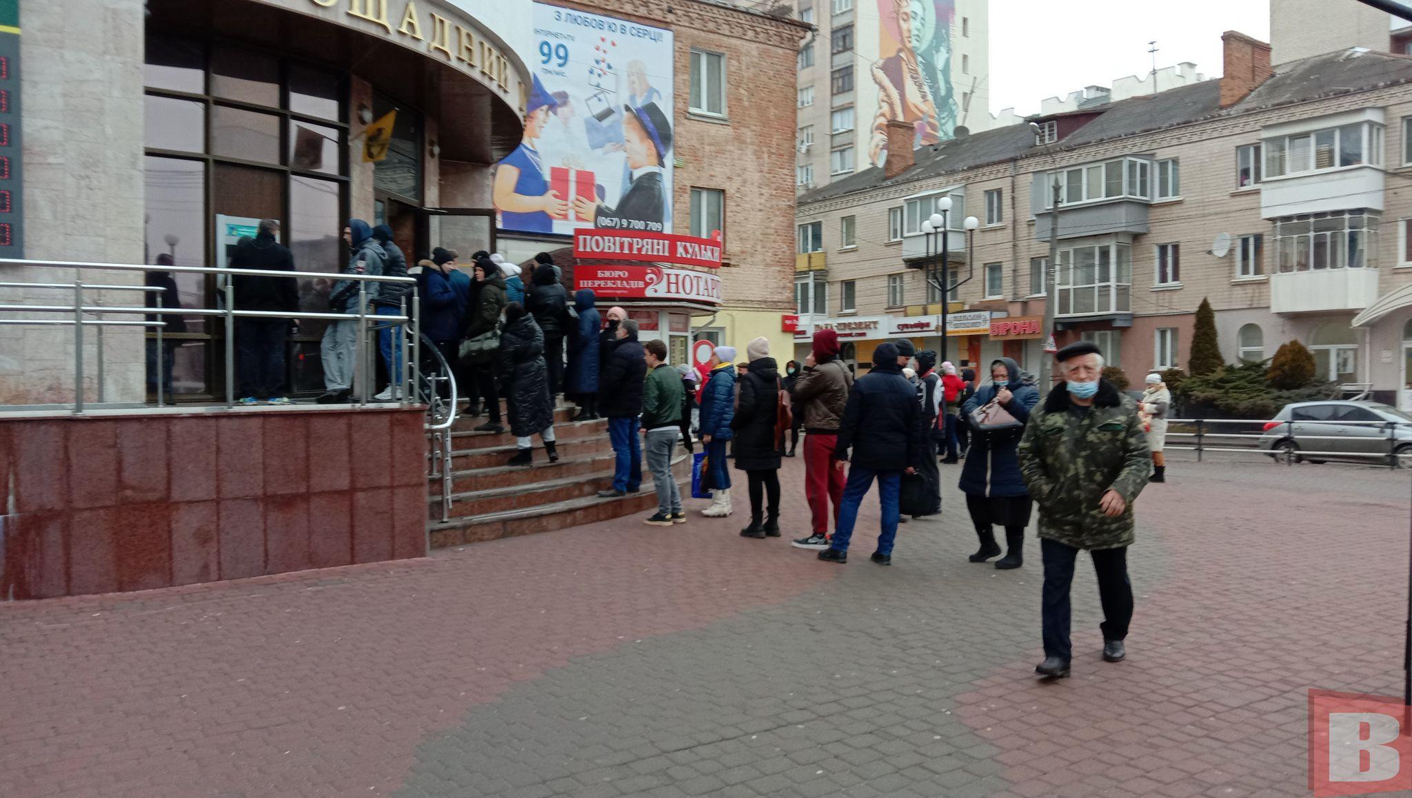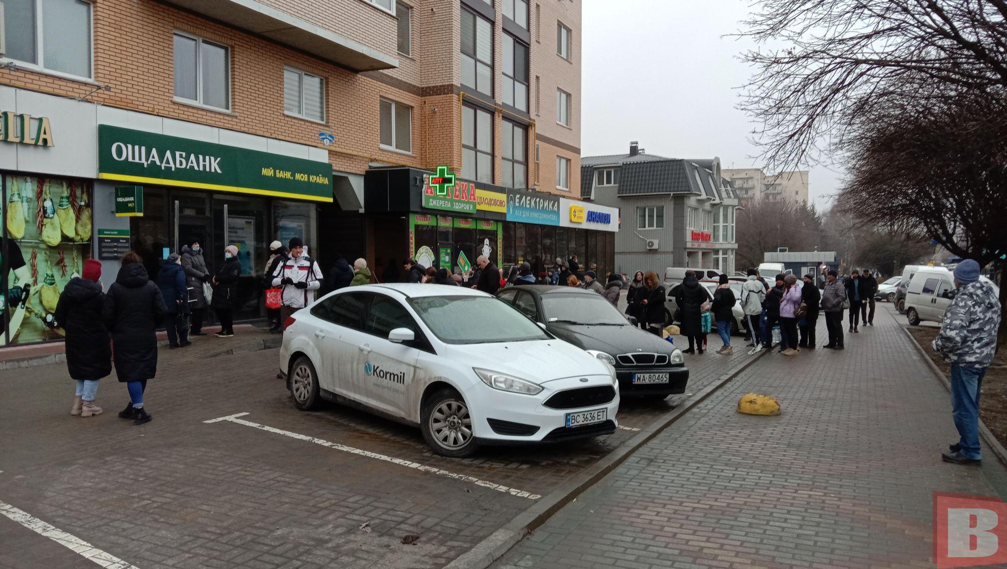 Журналіст vsim.ua пройшовся вулицями міста, аби подивитися, що на них відбувається. Отож, найбільше привертають увагу черги до банкоматів, які помітні у різних частинах міста. Крім того, містяни масово скуповують продукти, перш за все крупи. Приклад — супермаркет «АТБ» на проспекті Миру. Додалося роботи працівникам супермаркетів, які додають на полиці продукти.