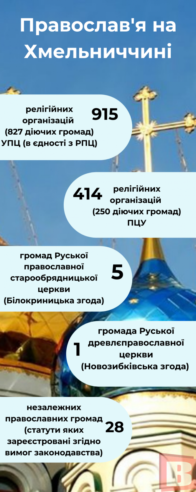 До сьогодні, 5 травня, розпорядженнями начальника Хмельницької обласної військової адміністрації зареєстровані зміни до статутів 31 релігійної громади Української православної церкви московського патріархату. Тобто ті, які вийшли з його складу. З них 11 змінили конфесійну приналежність на Православну церкву України (далі ПЦУ), 20 – на статус незалежних православних громад.