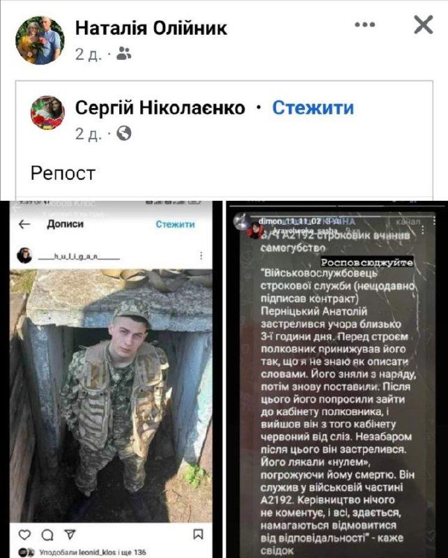 Варто додати, що одразу після смерті почала з’являтись інформація про приниження і знущання над молодими строковиками у частині. Дописи активно поширювали самі військовослужбовці у соцмережах, навіть з прізвищами командирів. За їхніми словами, Анатолій теж мав складні стосунки з керівництвом. Мовляв, йому навіть погрожували і начебто лякали “нулем”.