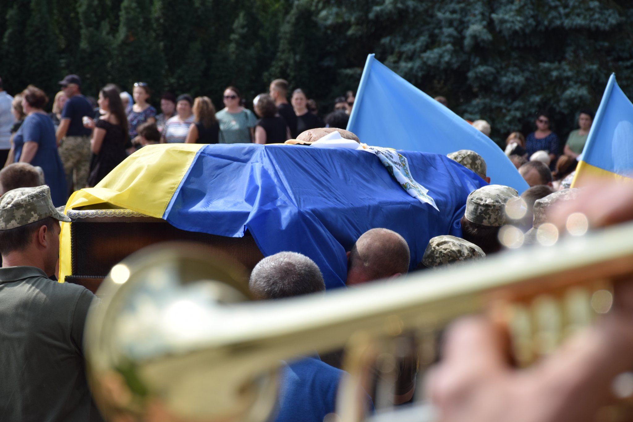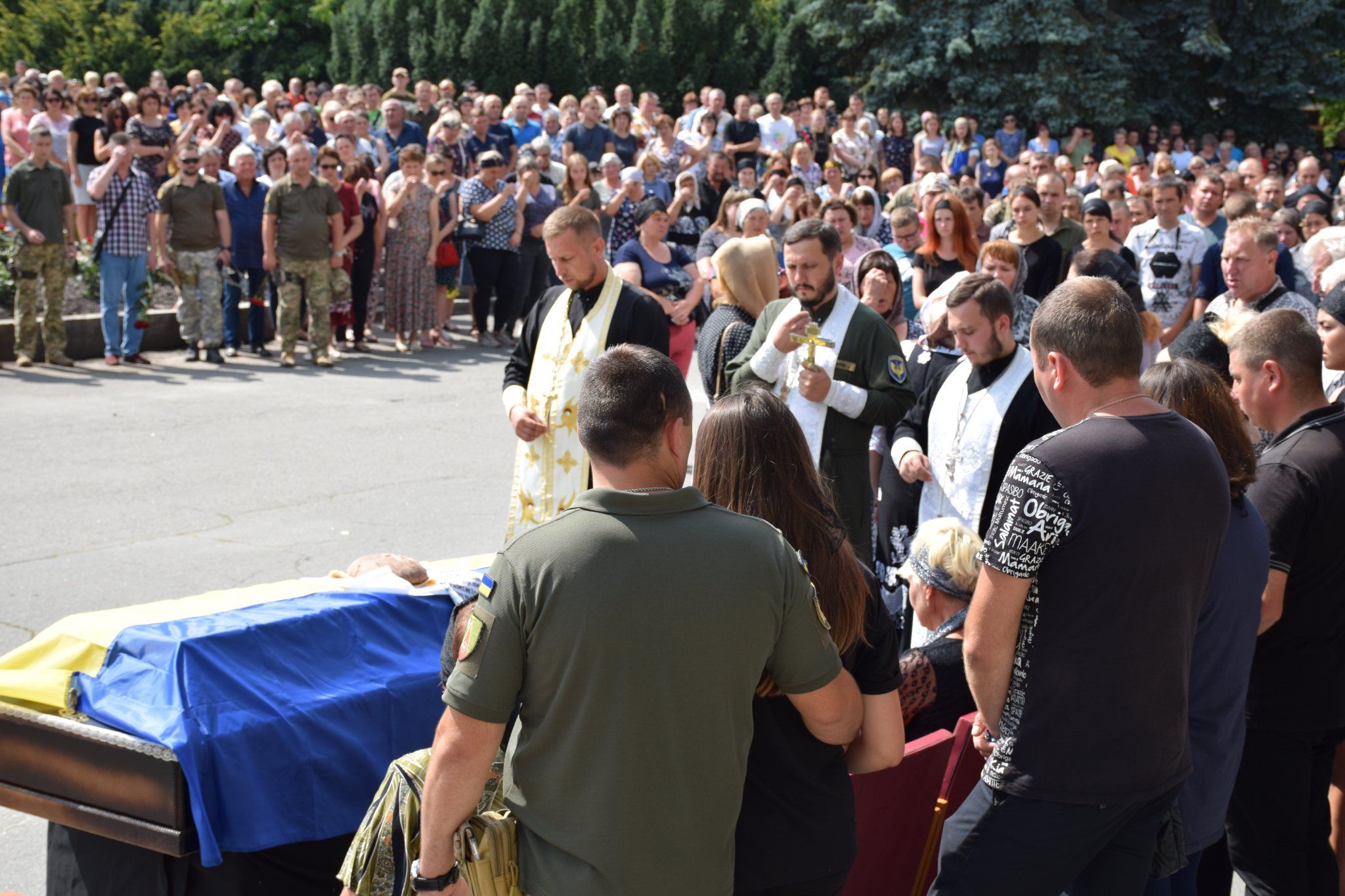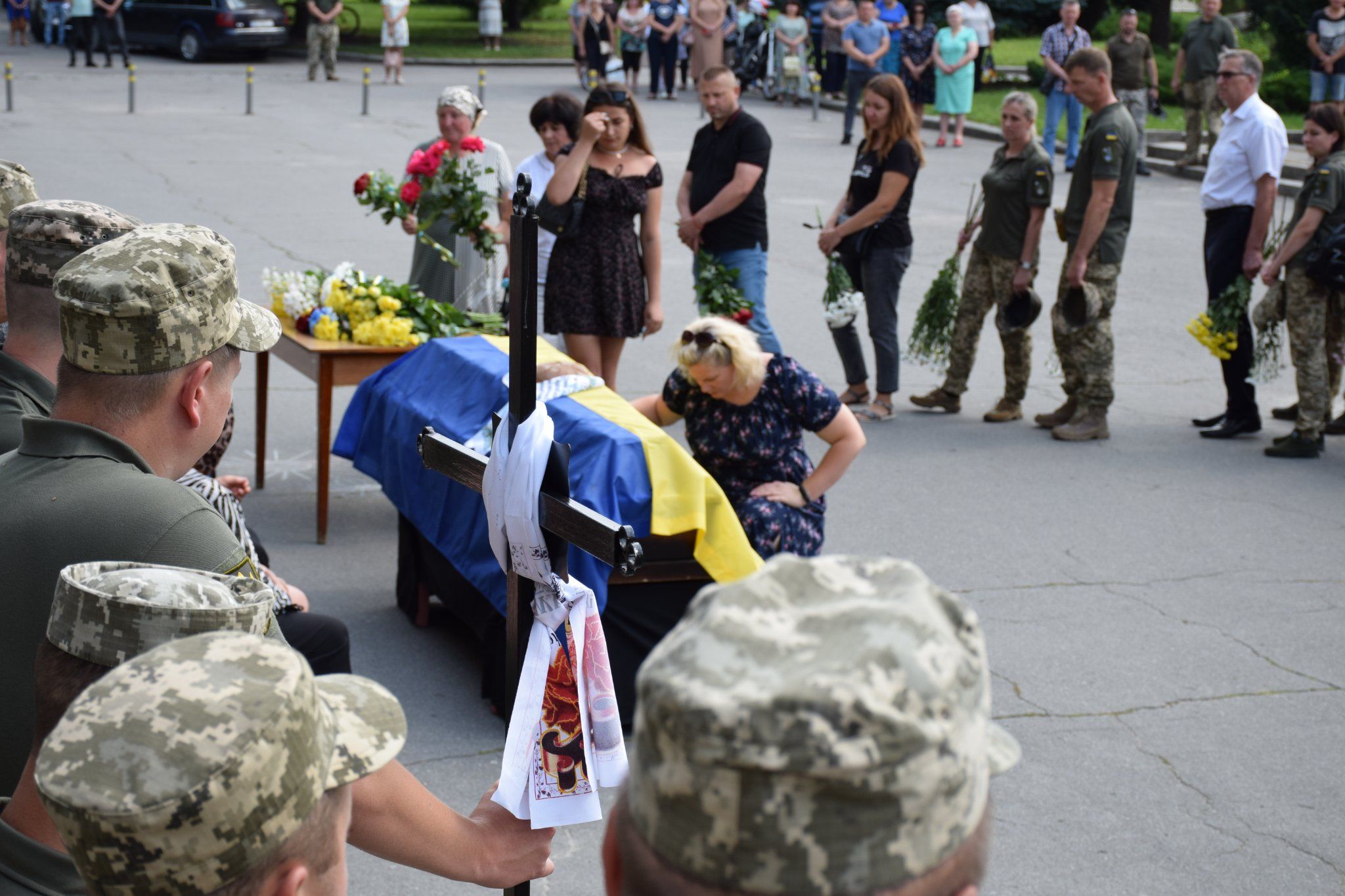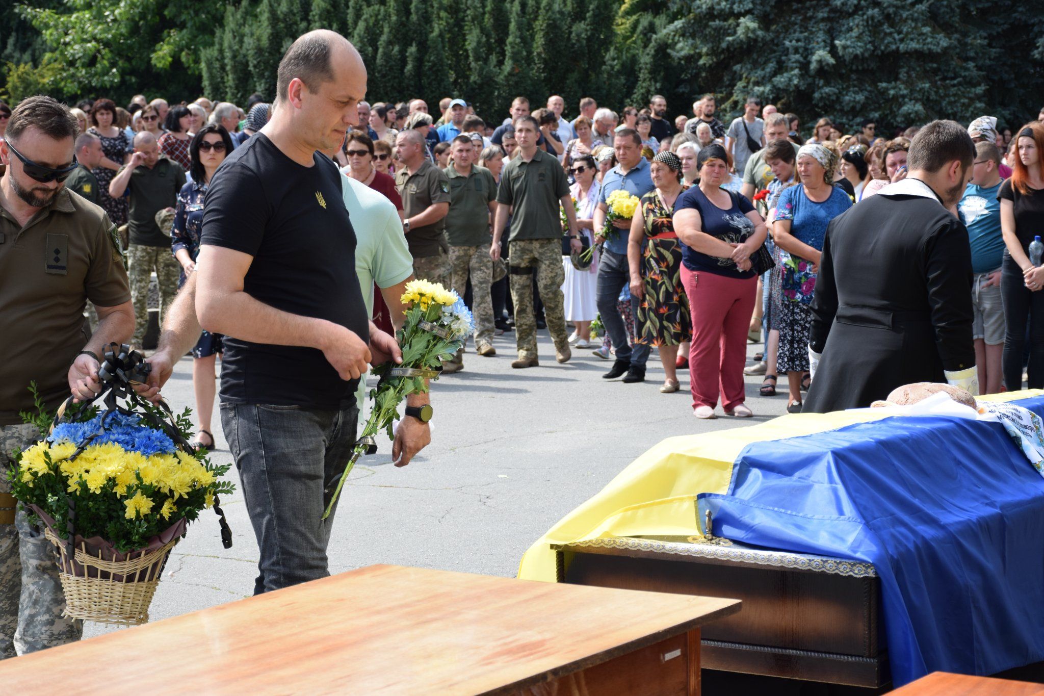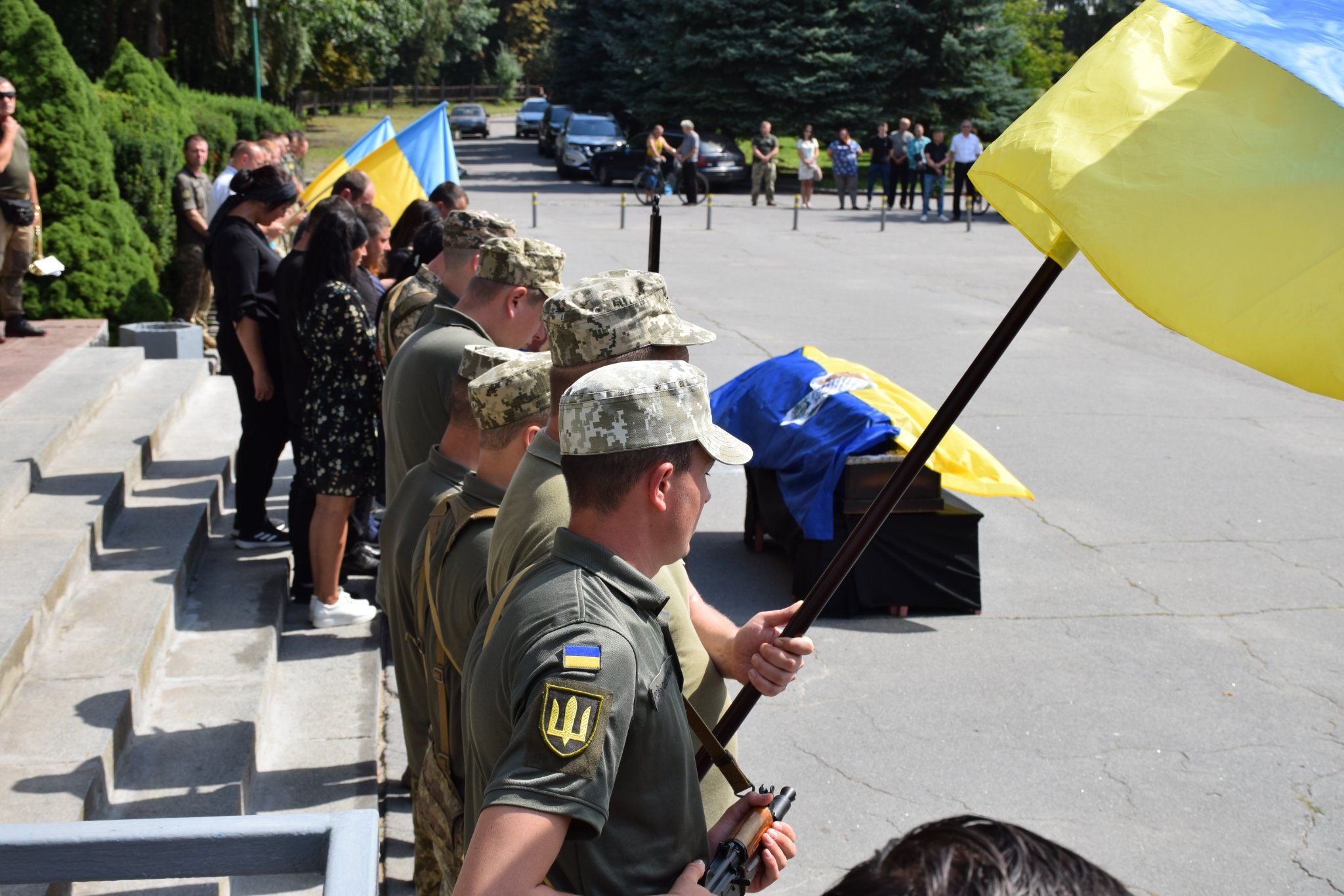Провести Героя в останню путь зібралося чимало шепетівчан, рідні, близькі, друзі та бойові побратими. Проводжали бійця з квітами та синьо-жовтими стягами.