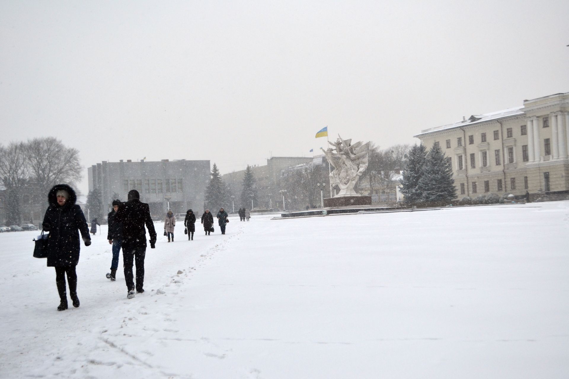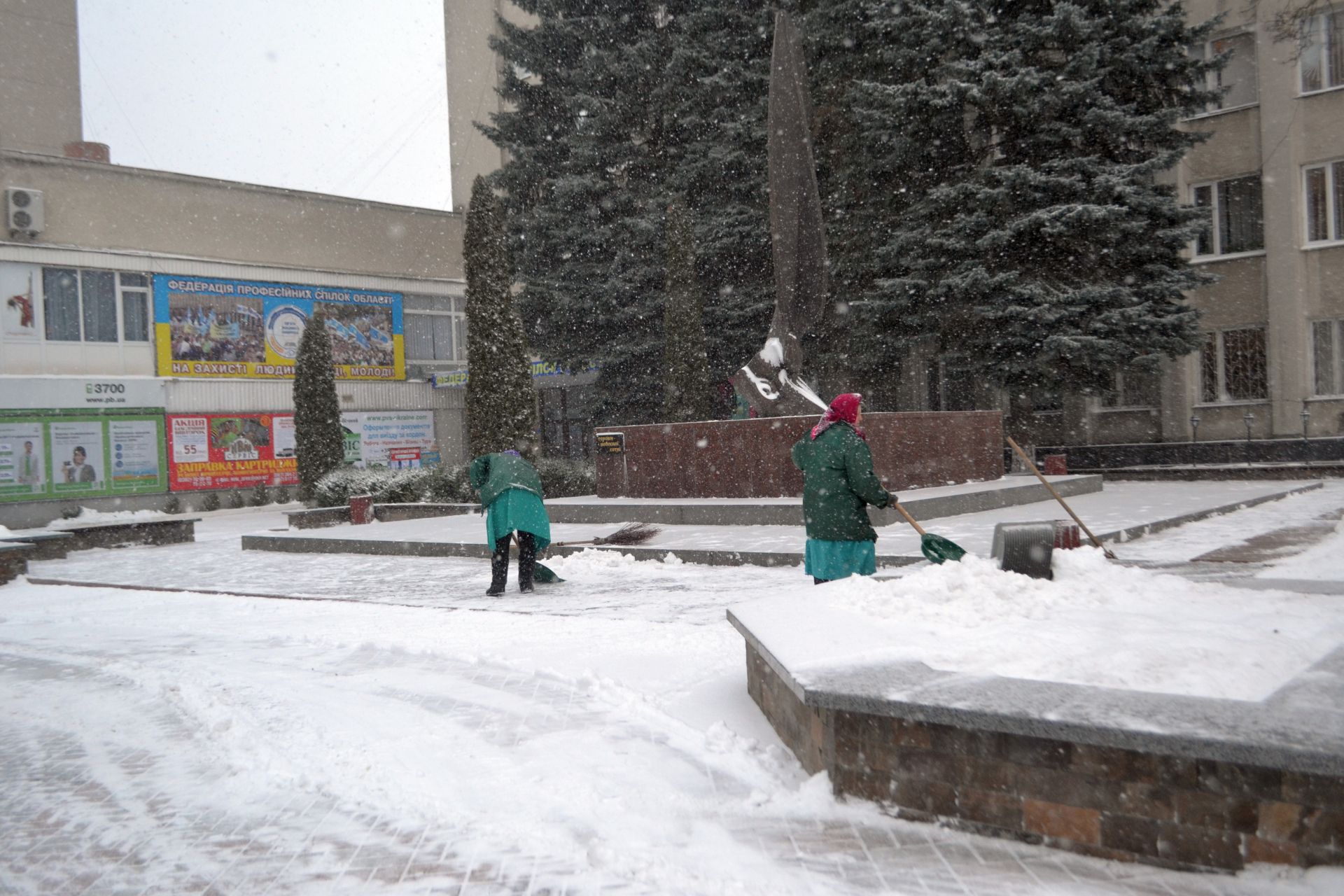 За прогнозами синоптиків, опади практично не припинятимуться до кінця цього тижня. Далі може бути потепління. То ж декілька днів сніг прикрашатиме місто і додаватиме клопотів комунальникам й працівникам всіляких офісів і магазинів, які вже вийшли на вулицю з лопатами, щоб прибрати.