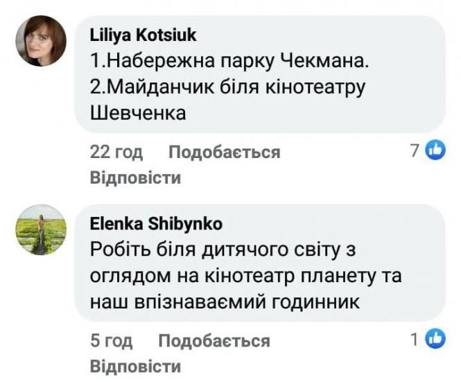 Їй пропонували обрати вулицю Проскурівську, набережну Південного Бугу, майданчик біля кінотеатру Шевченка та парк імені Чекмана.
