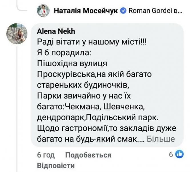 Сьогодні, 4 серпня, о 19.30 вечірній випуск новин транслюватимуть з Хмельницького. Про це на своїй сторінці у Facebook повідомив герой нашого недавнього матеріалу Владислав Бондар. На Проскурівській йому пощастило зустріти телеведучу Наталію Мосейчук, яка проводитиме ефір на одній із локацій нашого міста.