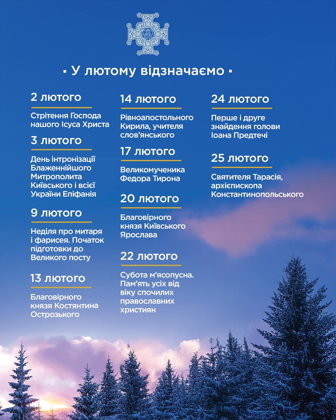 Які ще церковні свята будуть в лютому 2025 року після переходу ПЦУ на новоюліанський календар – повідомили у Православній Церкві України..
