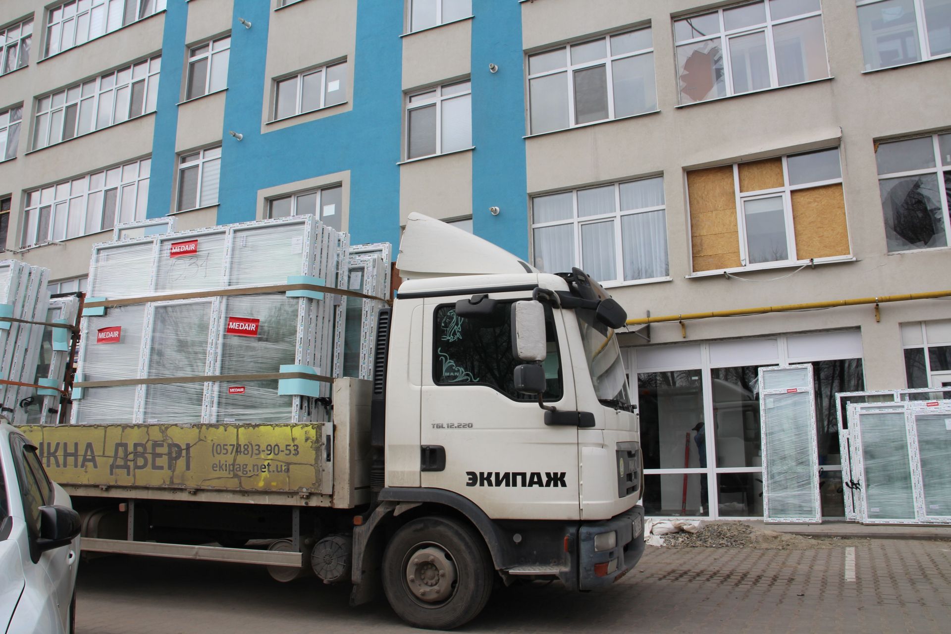 А тепер міжнародна компанія надала пластикові вікна, аби відновити пошкодження.