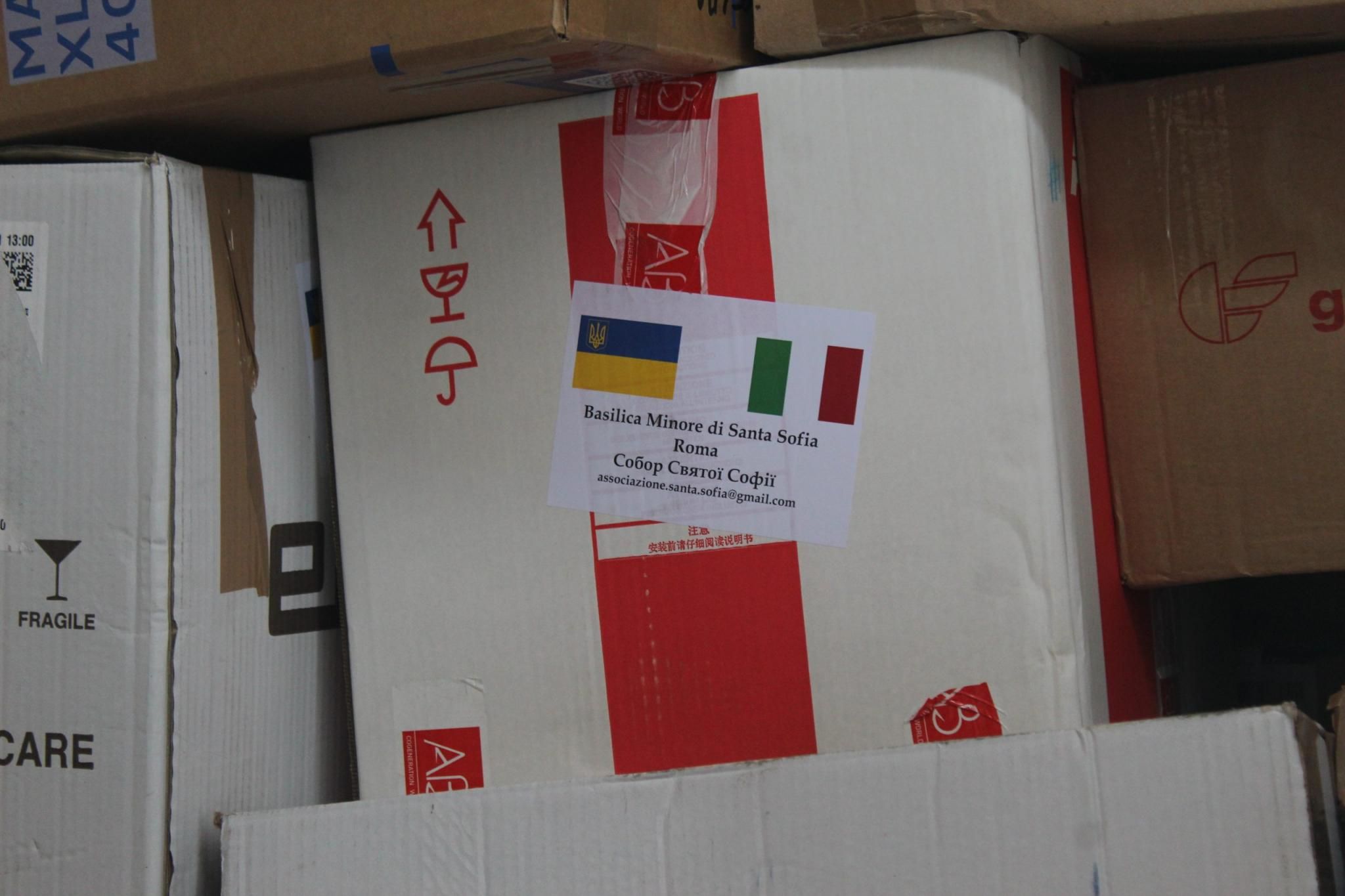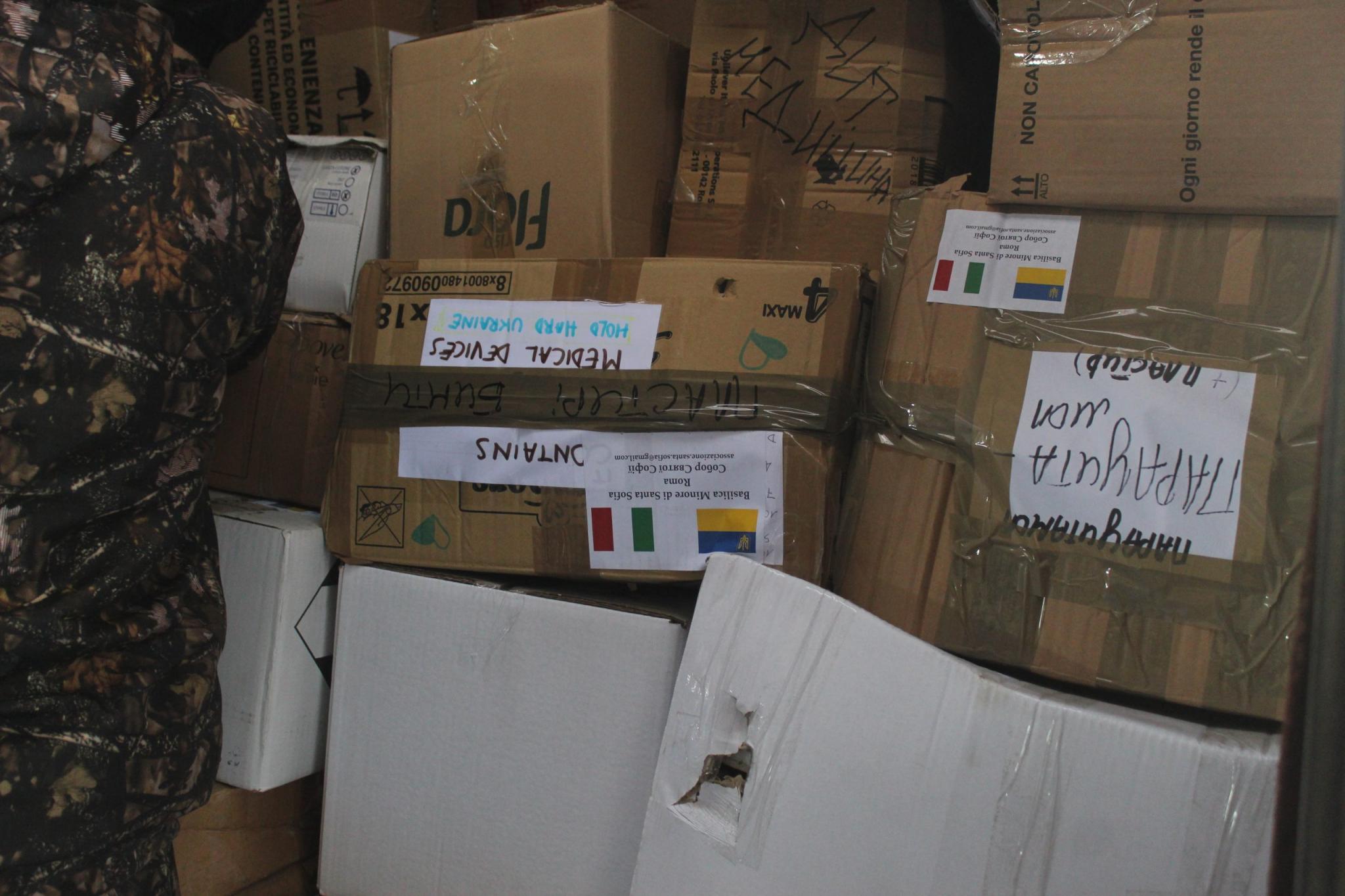 Ціла партія вантажу з гуманітарною допомогою прибула в Хмельницький з Італії. Її доставили за сприяння Релігійного Товариства “Свята Софія”, що у Римі. Італійці передали 20 тонн “гуманітарки”. Фургон був повністю завантажений медичними засобами, одягом, продуктами та іншими речами.