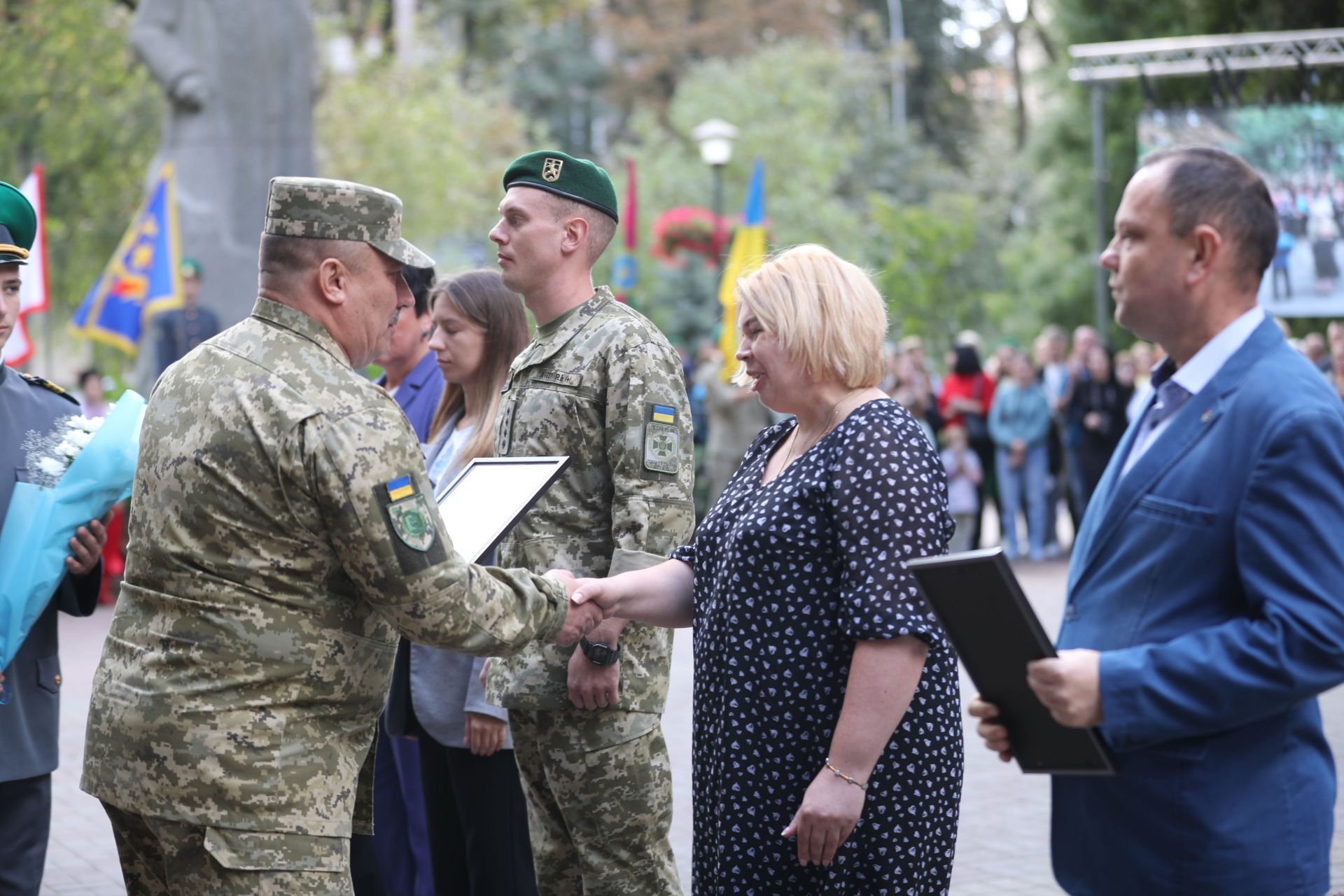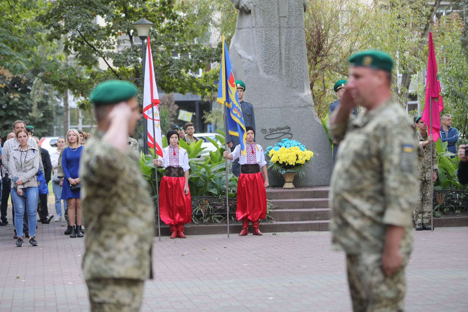 Сквер Шевченка, неділя, 11 година. Біля пам’ятника Тарасу Шевченку зібралося десятки людей. Це прикордонники, ліцеїсти та їхні батьки. Останні тримали в руках смартфони й напоготові камери. Адже сьогодні, 1 жовтня, їхні діти складали присягу. Тож вони хотіли зафіксувати ці важливі моменти життя.