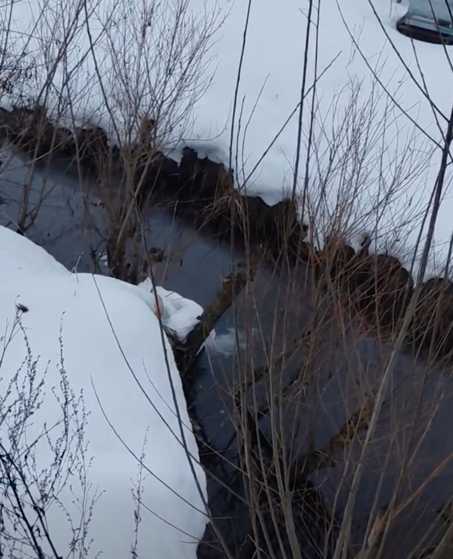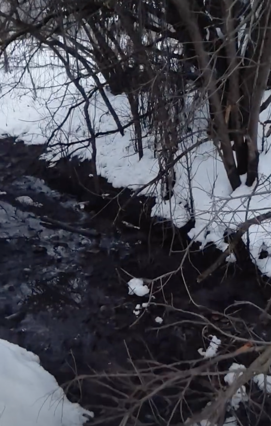 Активісти оприлюднили відео, на якому видно трубу, з якої у притоку надходить рідина. Вони також повідомляли про їдкий запах каналізації та осад у воді. Ці потоки не замерзають навіть у мороз, бо вони теплі. Саме тому взимку їх добре видно, зазначали у ГО.