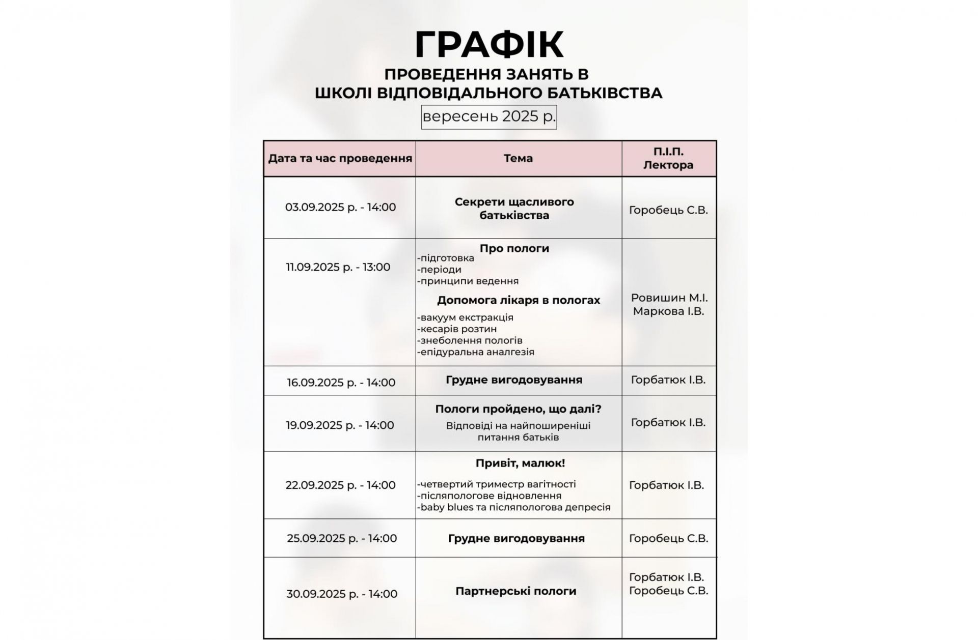 - Тут майбутні мами й татусі отримають знання та поради для підготовки до народження малюка.