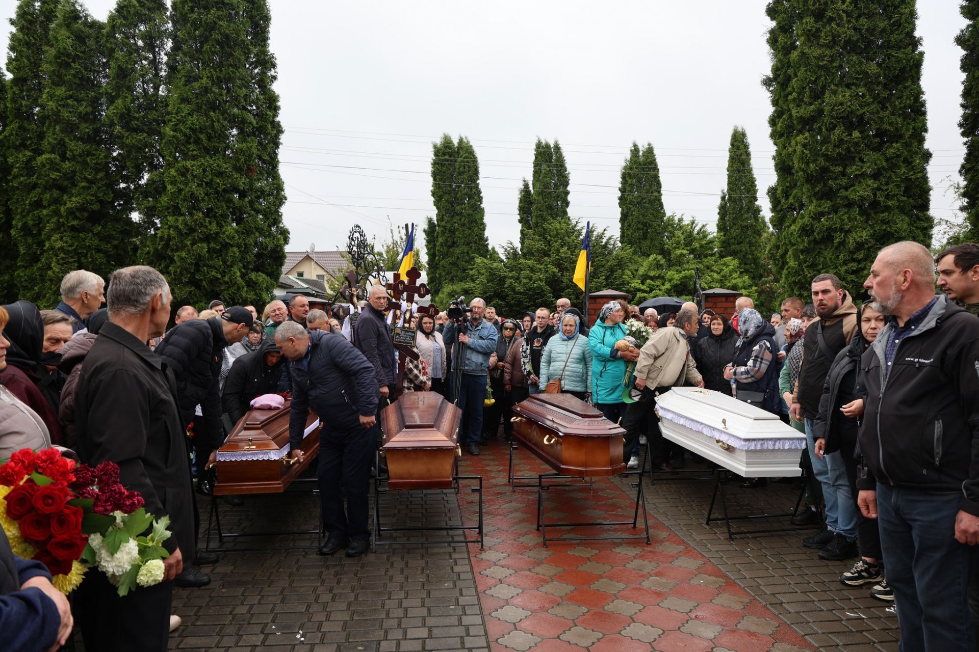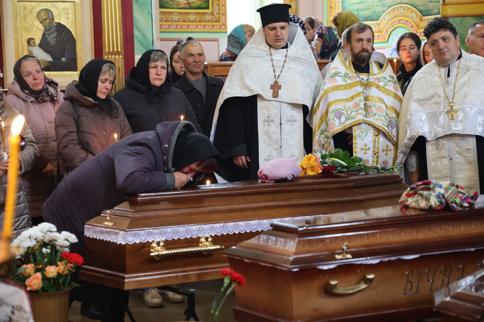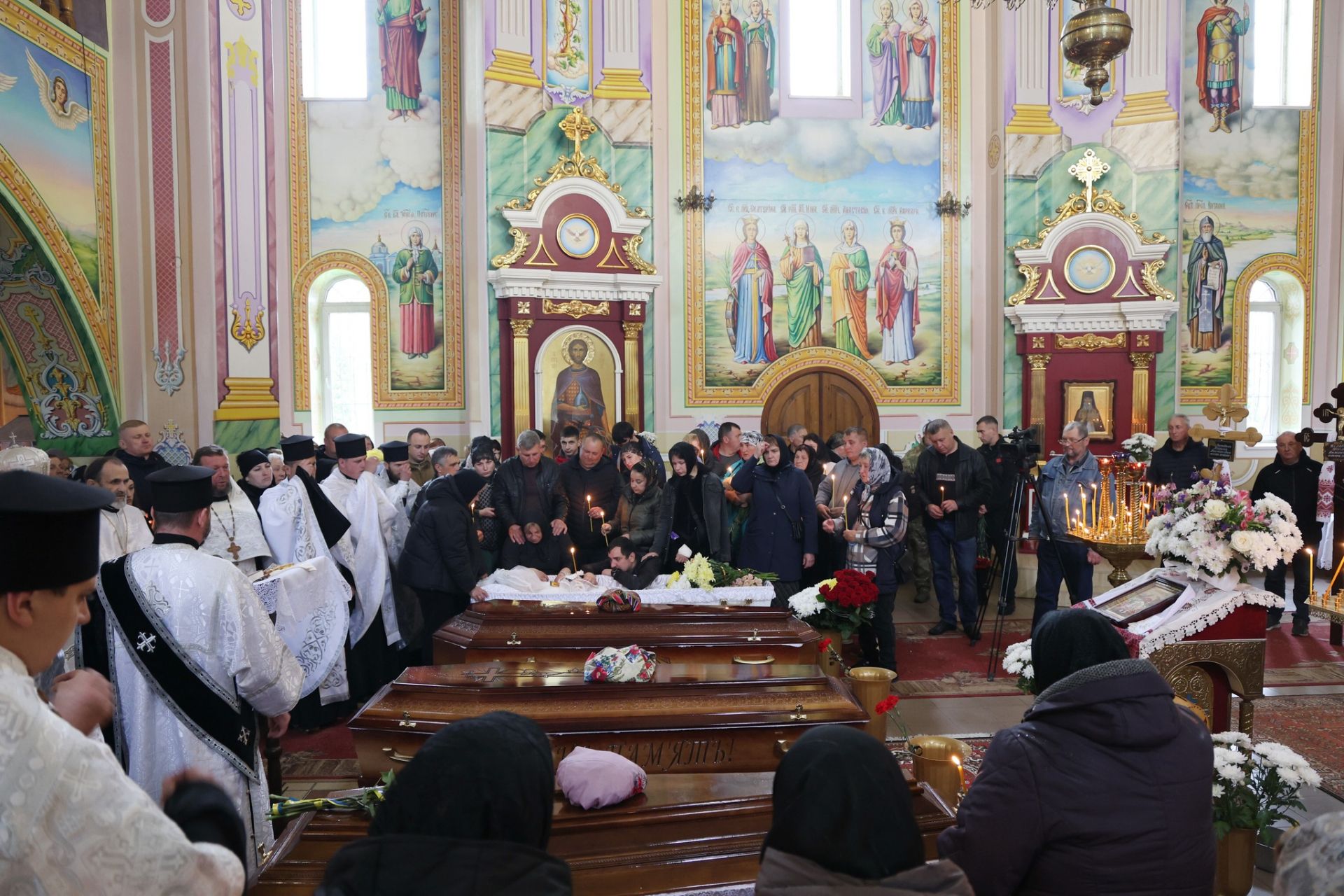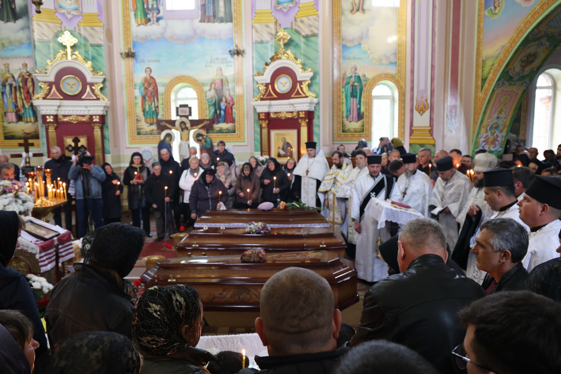 Чин поховання загиблих мешканців громади відбувся у Свято-Воскресенському храмі. Саме там зібралися сотні людей.