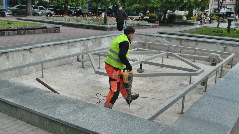 У Хмельницькому комунальники ремонтують фонтан «Куля», що в сквері Шевченка. Наразі тривають роботи з демонтажу, облицювання стін, зняття відшарованої плитки, оббивання території з чаші фонтану, штукатурення. Опісля кріпитимуть нову плитку, облицьовуватимуть фонтан, здійснюватимуть гідроізоляцію та ґрунтування.