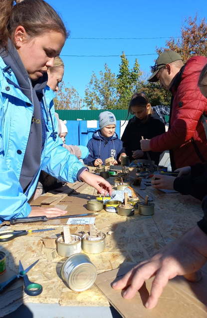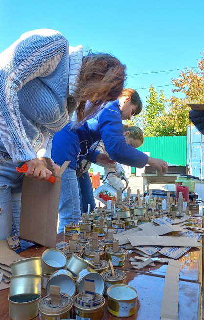 Також можна долучитися, принісши вторинну сировину – бляшанки, недопалки свічок, картон…