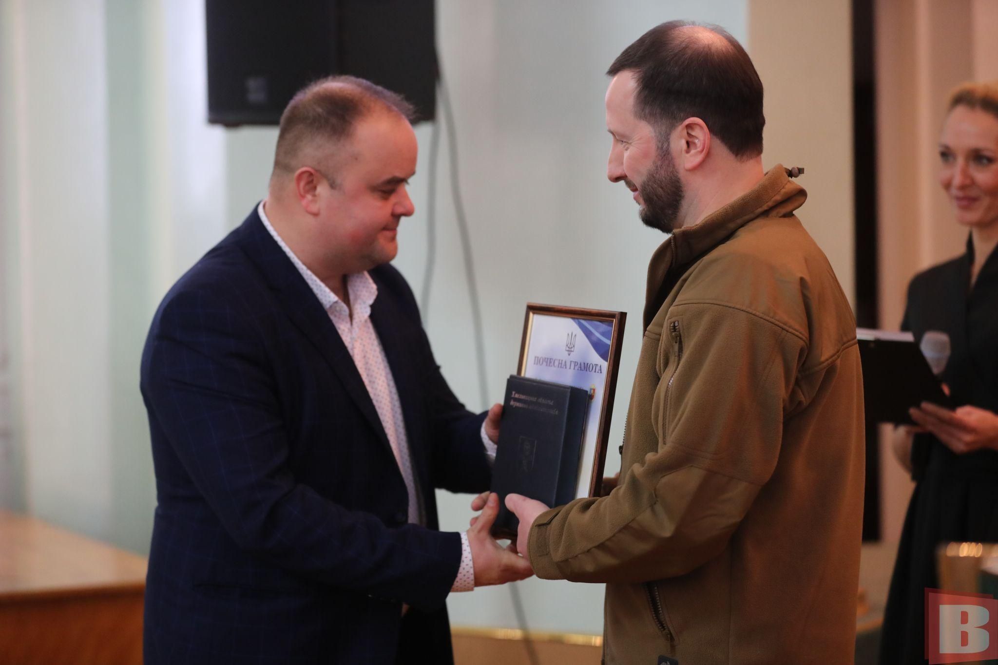 Крім того, Сергій Тюрін вручив почесні грамоти та подарунки від імені військової адміністрації працівникам обласної ради. Їхній перелік: