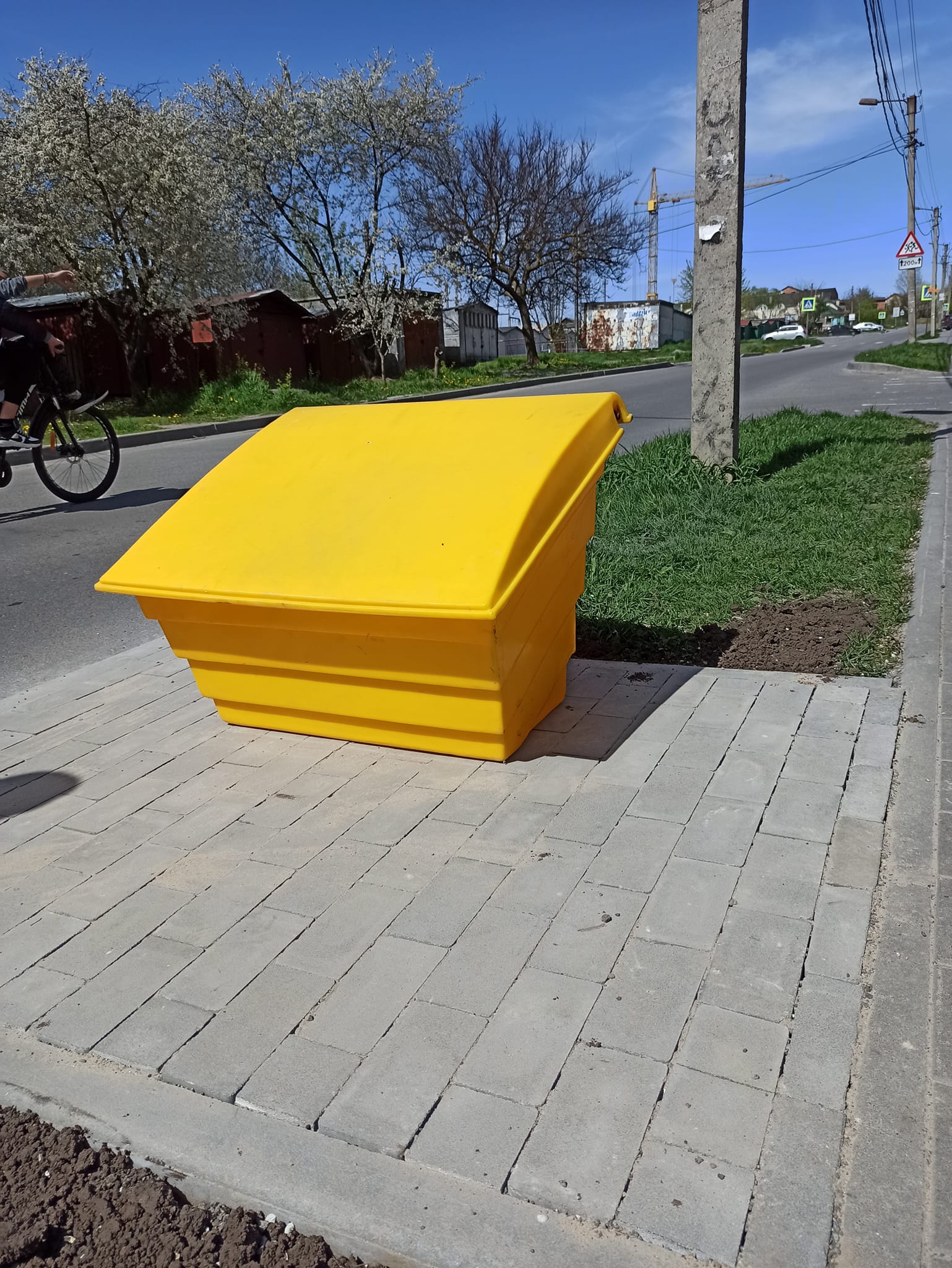 До слова, пошук в Google подає, що середня вартість пластикового контейнера для піщано-сольових сумішей об’ємом 70 літрів коштує близько 3,5 тисяч гривень. Такий же контейнер, але на 150 літрів, обійдеться в понад 4,5 тисяч гривень. Це якщо купувати їх в роздріб.