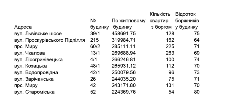 Які будинки у Хмельницькому заборгували за воду найбільше: