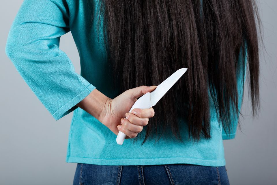 Жінка розповіла суду, що під час сварки вона штовхнула чоловіка. Той впав на коліна. Тоді вона взяла кухонний ніж із ручкою жовтого кольору. Хотіла налякати співмешканця й вдарила його ножем у спину. Тоді витягнула ніж і поклала на стіл.