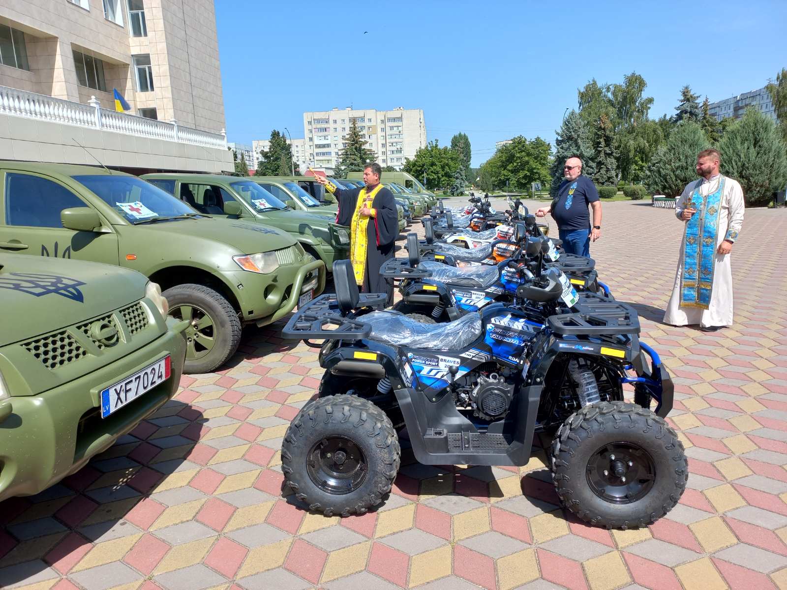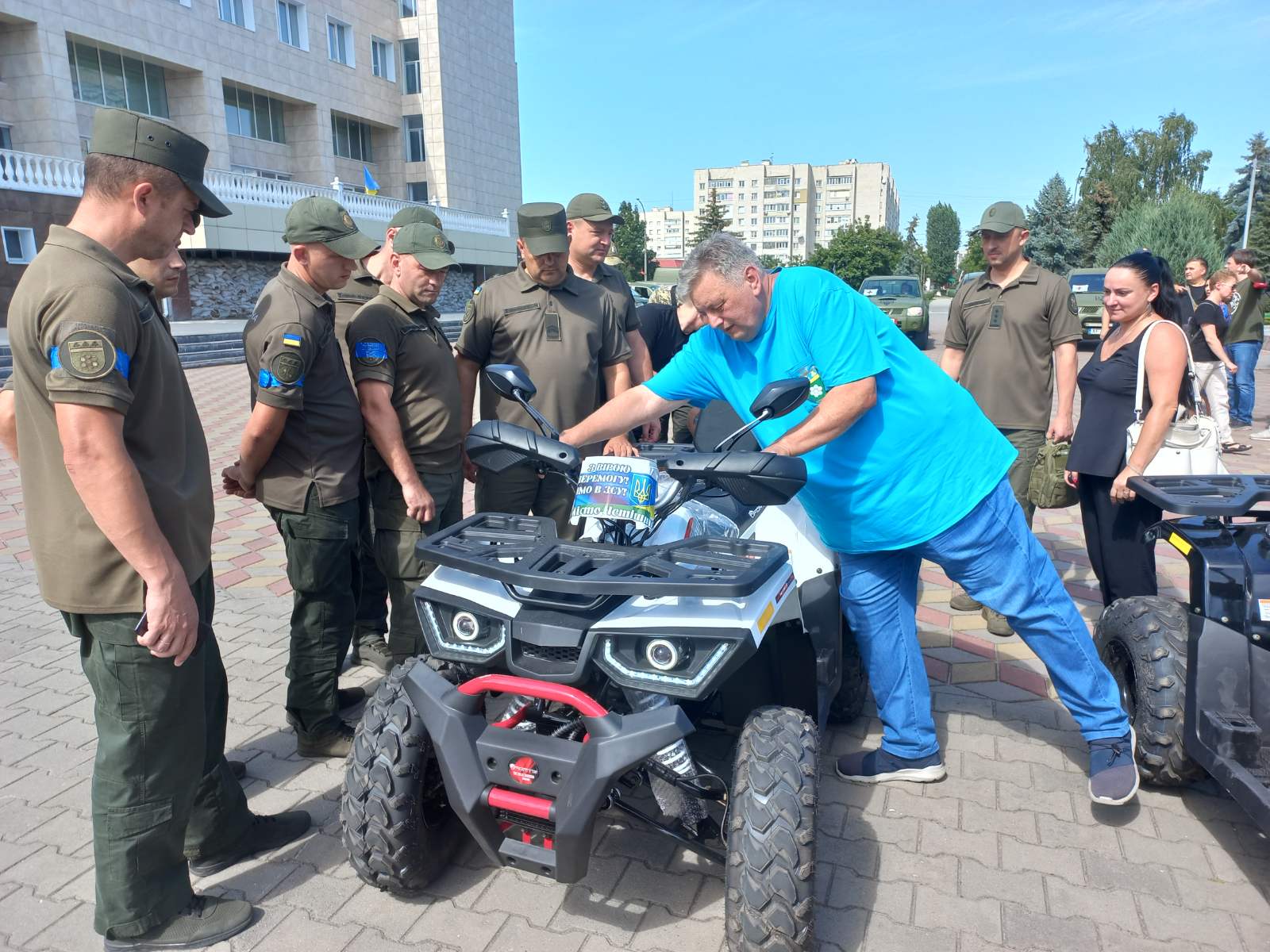 «Три авто та 7 квадроциклів закуплено за кошти бюджету громади, один - за кошти волонтерів, - наголосив міський голова Нетішина Олександр Супрунюк. - Авто будуть передані на передову у військові частини, де воюють з російськими окупантами наші земляки, 5 квадроциклів – до однієї з військових частин Національної гвардії України, а 2 - ЗСУ».