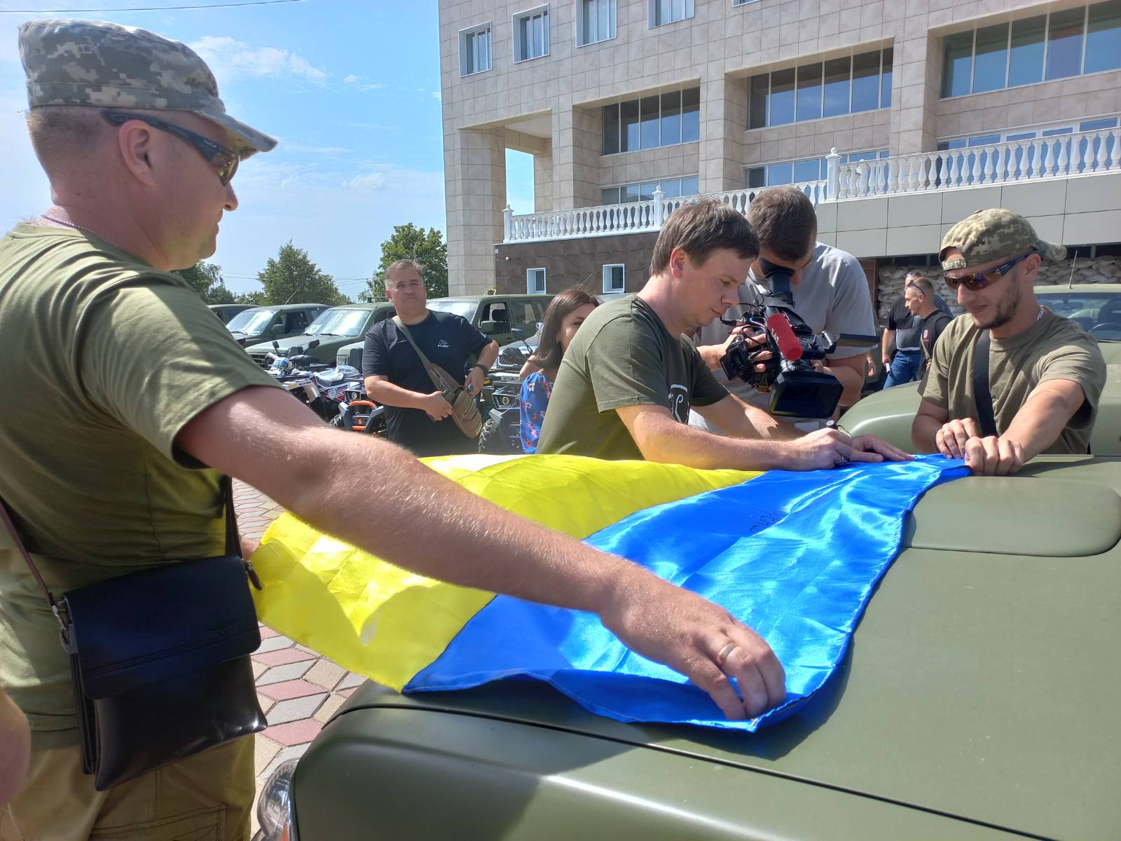 Інші автомобілі - закуплені для ЗСУ завдяки відомому українському телеведучому каналу «1+1», автору програми «Світ навиворіт» Дмитру Комарову, який на День прапора прибув до Нетішина.
