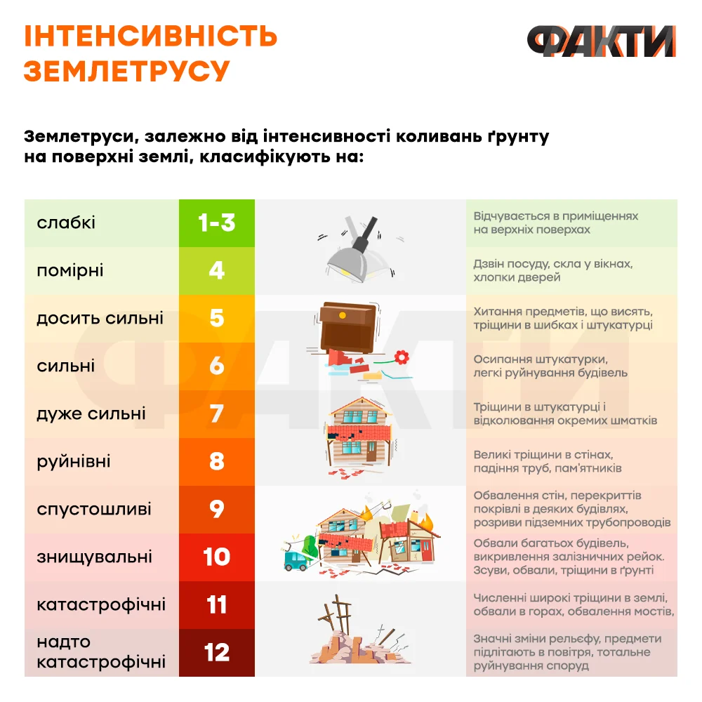 Так, спеціалісти головного центру спеціального контролю повідомляють, що 14 лютого о 15:16 (за київським часом) зафіксували підземні поштовхи магнітудою 5,7 балів за шкалою Ріхтера. За класифікацією цей землетрус відноситься до сильних.