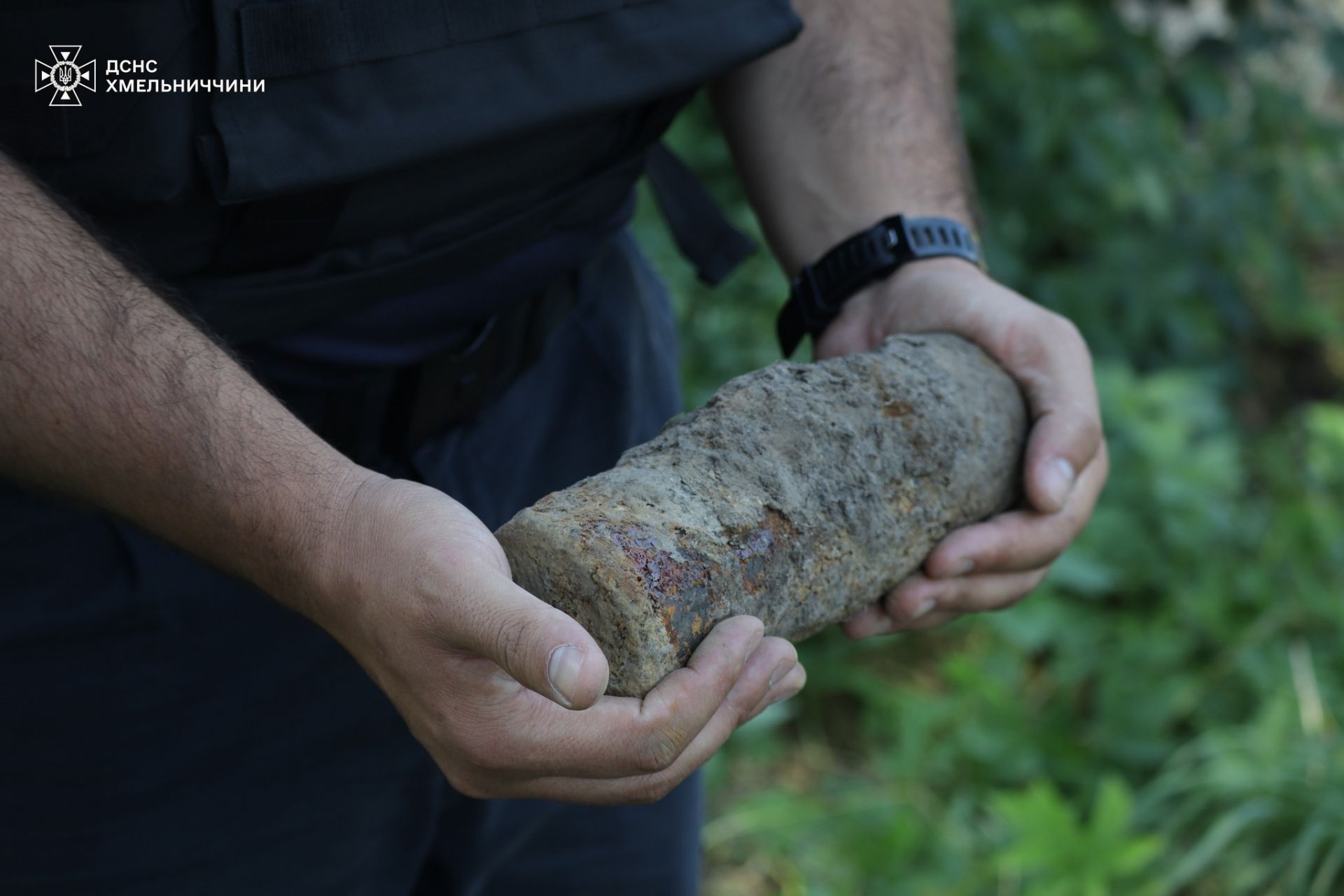 На Хмельниччині знову знайшли небезпечну спадщину минулого — два артилерійські снаряди. Боєприпаси виявив місцевий мешканець під час робіт у власному городі в селі Копачівка, що в Хмельницькому районі.