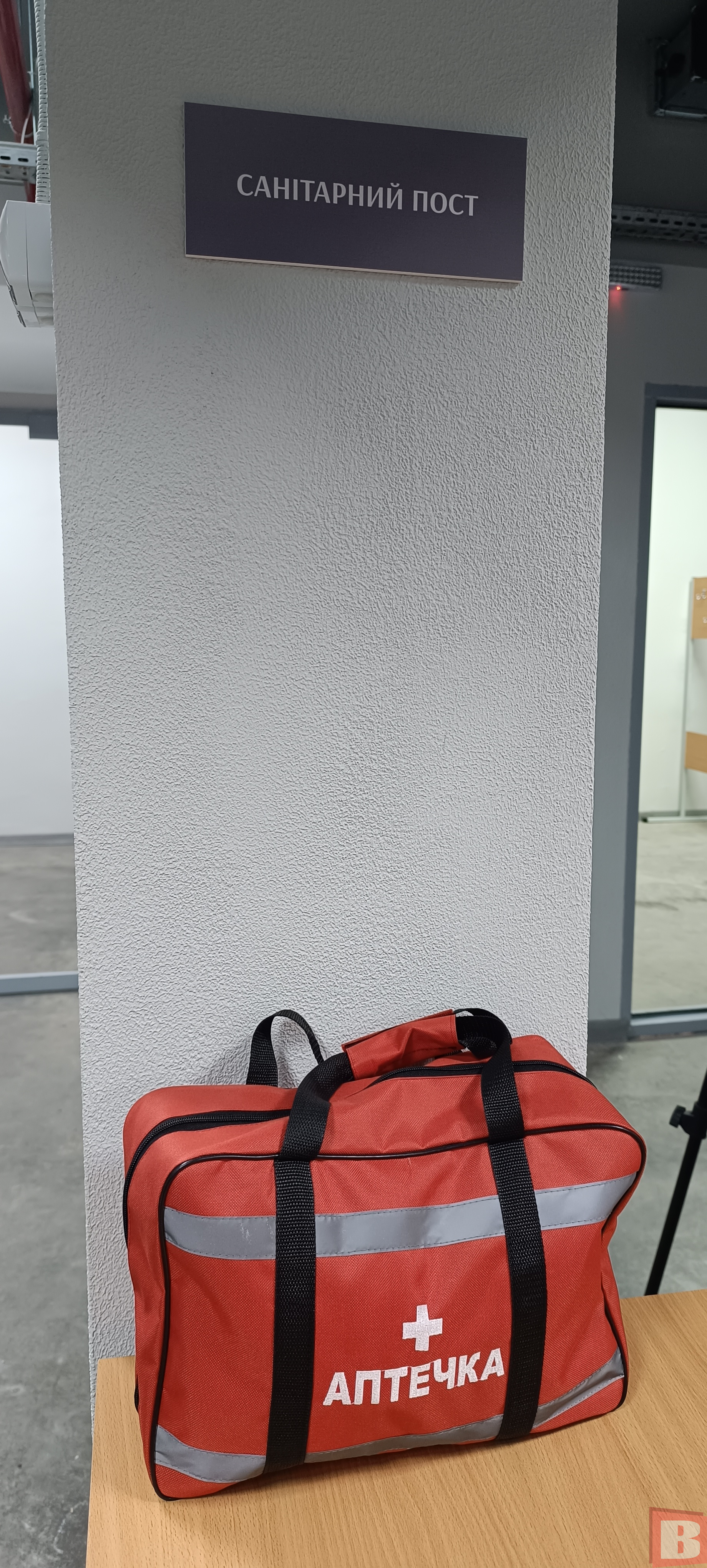 – Тут є 92 парти, все інше – це місця для вчителів та обслуговуючого персоналу. Також є допоміжні кімнати: гардеробні, приміщення для зберігання води і приготування їжі. Укриття має чотири туалети – для дівчаток, хлопчиків, дорослих і окремо для маломобільних дітей. В нас є два виходи через сходи і підйомник. Останній можна використовувати для маломобільних осіб та у випадку критичних ситуацій. Є генератор – резервне підземне джерело живлення, – розповідає підрядник Євген Денисюк.