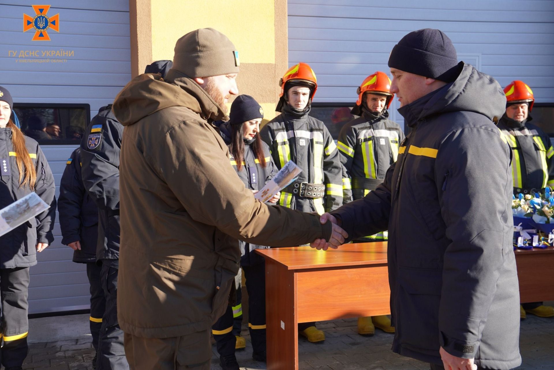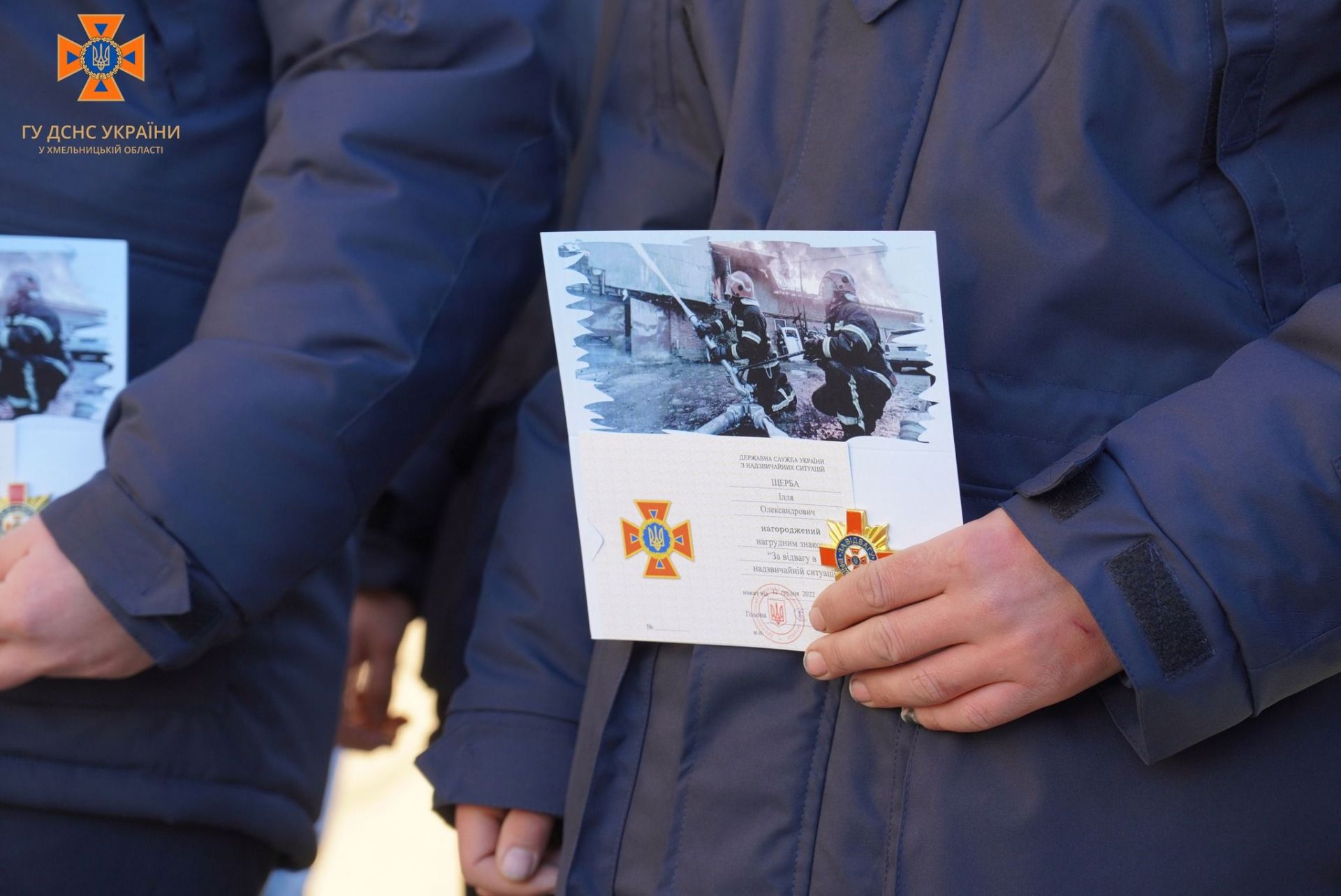 — Сьогодні у Старокостянтинові відзначили рятувальників області та передали чотирьом сім'ям сертифікати на житло. Нагороди вручили за сміливість та мужність у ліквідації наслідків ворожих обстрілів, — повідомив очільник Хмельниччини Сергій Гамалій.