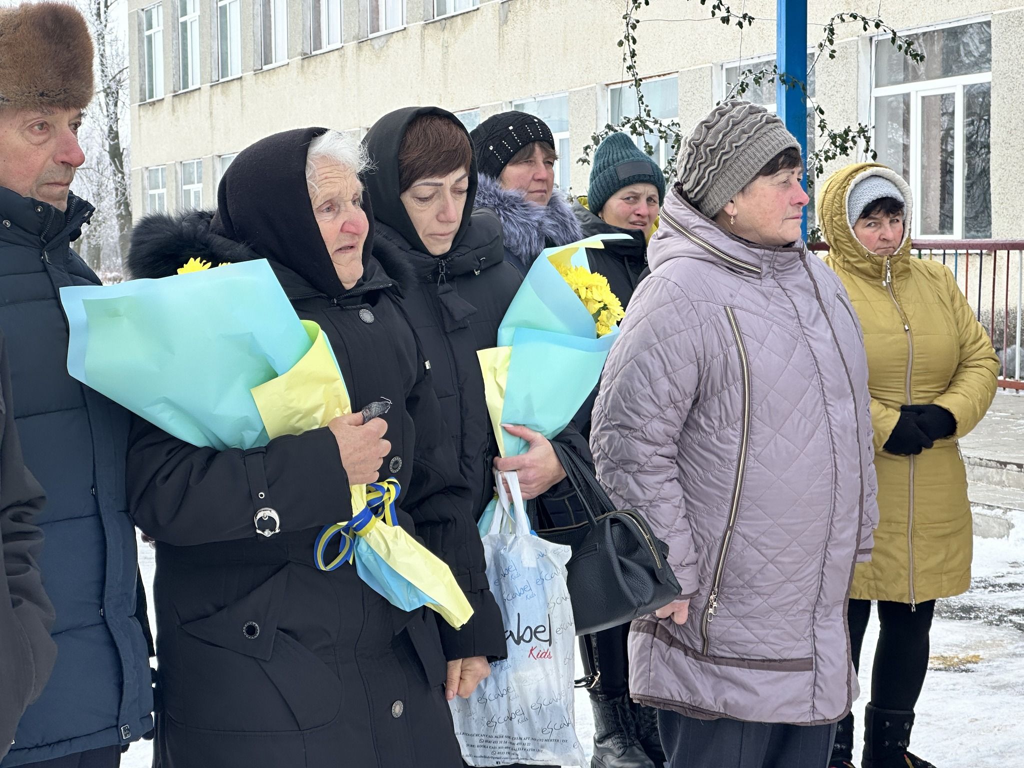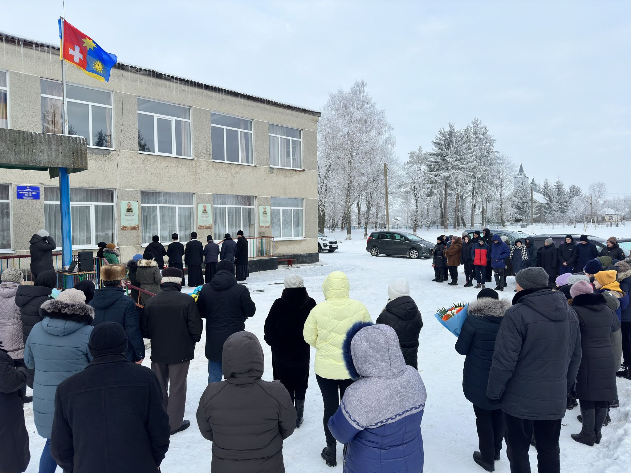 На урочистості з нагоди встановлення пам’ятних знаків колишнім учням на подвір’я їх рідного навчального закладу зійшлися школярі, родини загиблих, представники громади та жителі села Яхнівці.