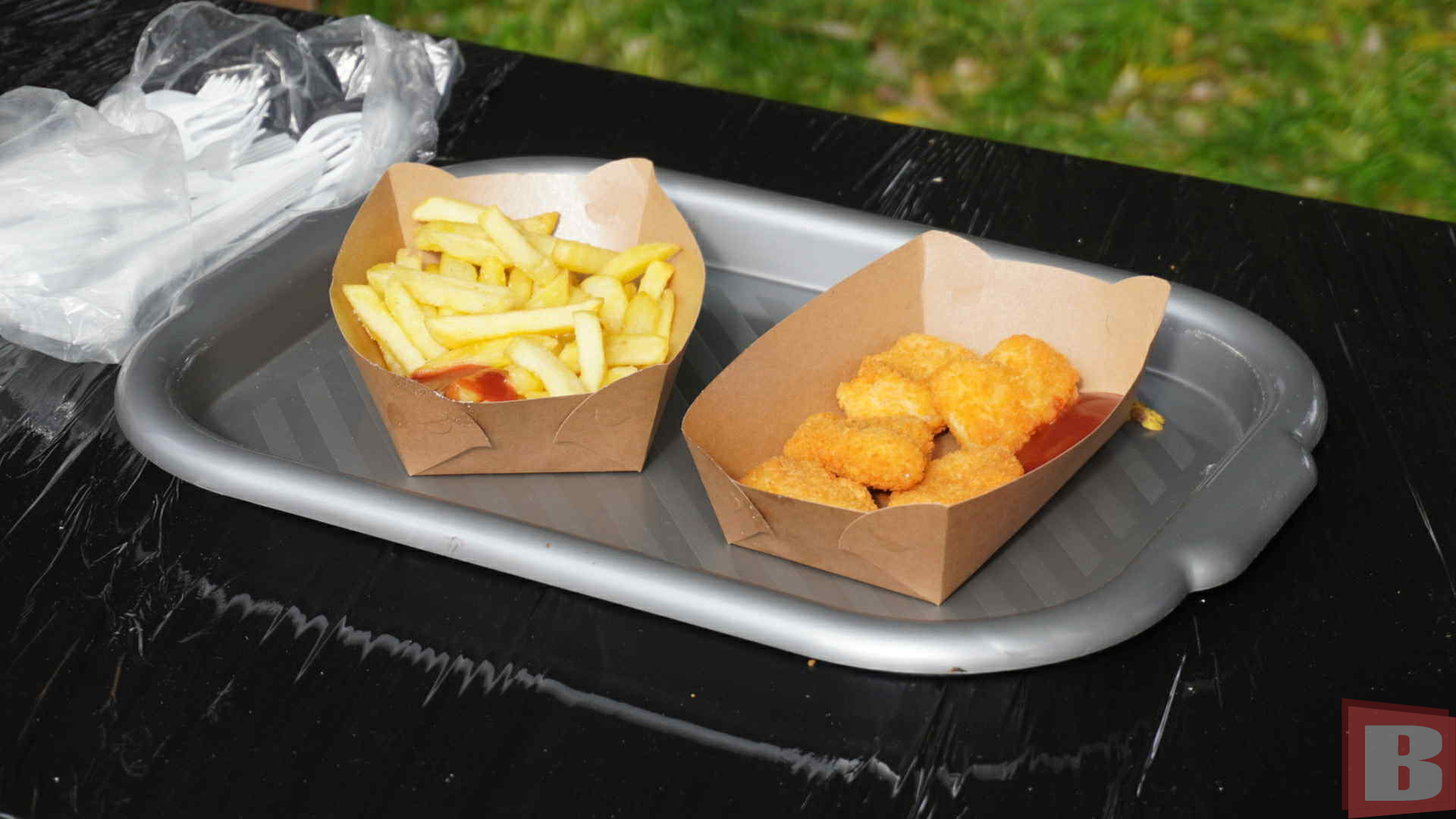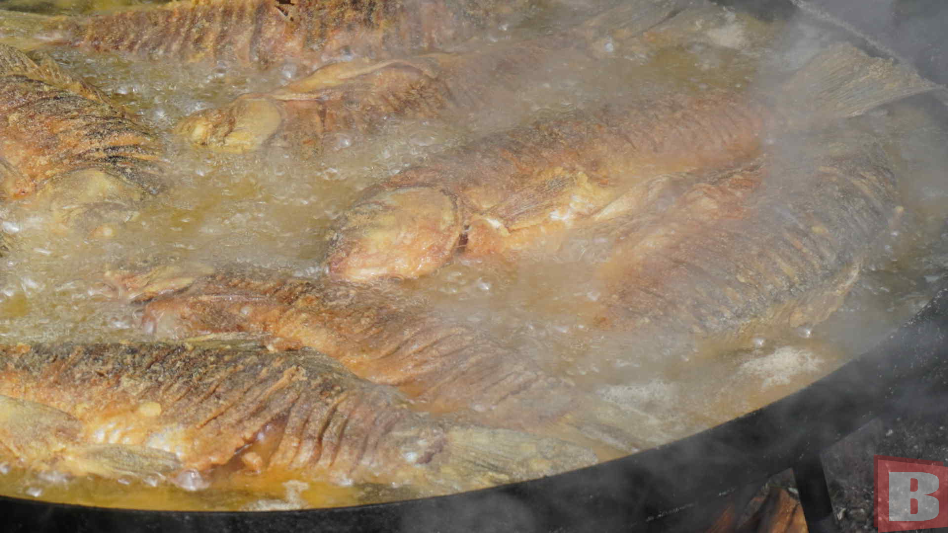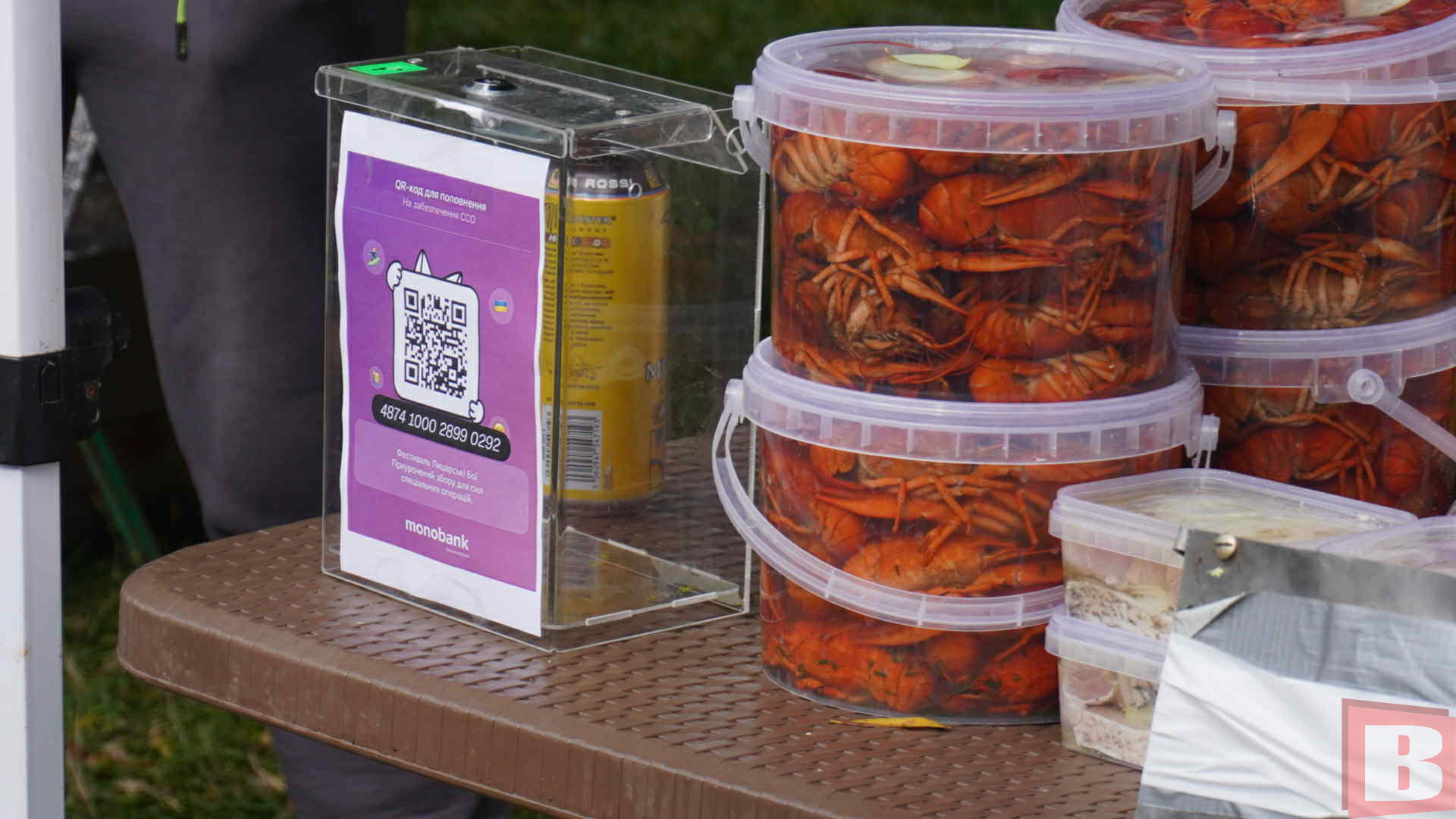 У перервах всі відправляються до фудкорту. Там можна придбати плов, шашлик, бургери. Також продають раки за 1400 гривень/кілограм. Уху за 100 гривень. Товстолоб та амур за 500 гривень/кілограм. Готують все це перед покупцями, на бороні. Ну а тим, хто мерзне, в похмурий осінній день – пропонують глінтвейн.