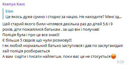Водночас у коментарях пишуть, що про причину конфлікту. Мовляв, якийсь старший чоловік чіплявся до дітей. Ті пожалілися батькам. Що було далі, видно на відео. Також користувач додає, що правоохоронці розбираються в даній ситуації.