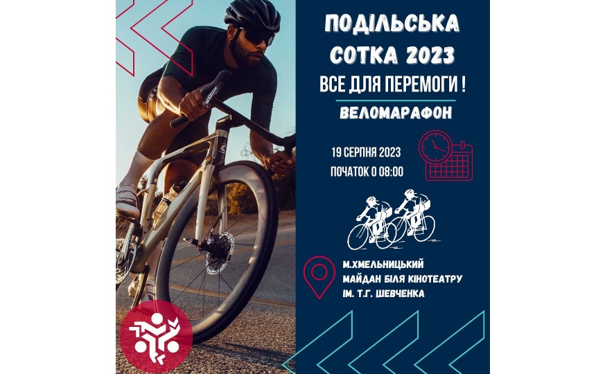У Хмельницькому відбудеться аматорський веломарафон “Подільська сотка 2023. Все для Перемоги!” Захід пройде 19 серпня, на майданчику поблизу кінотеатру Шевченка. Початок - о 8 годині.